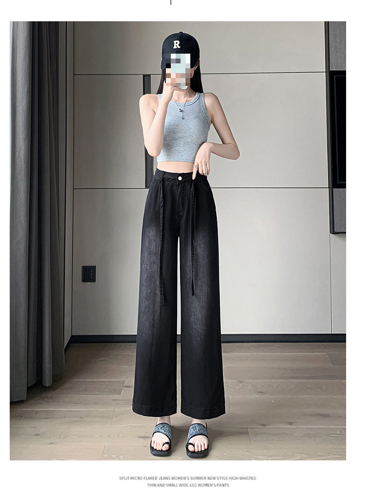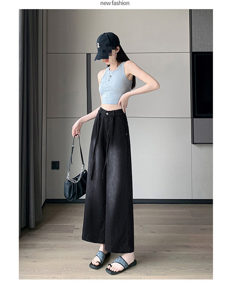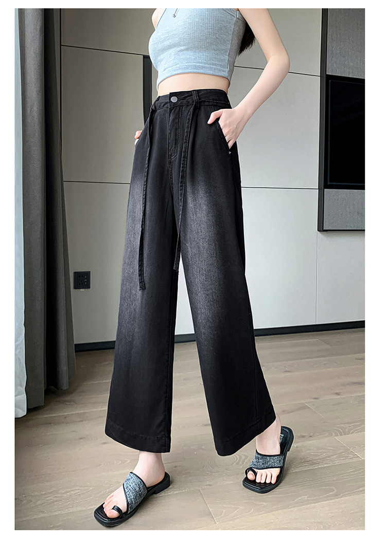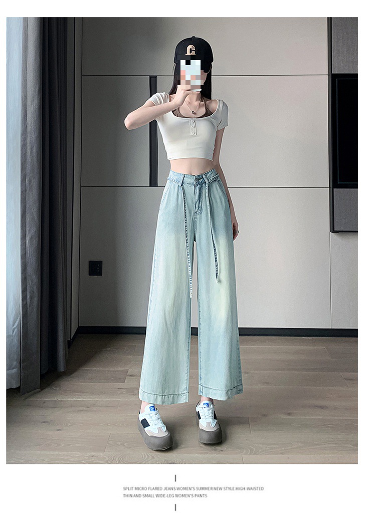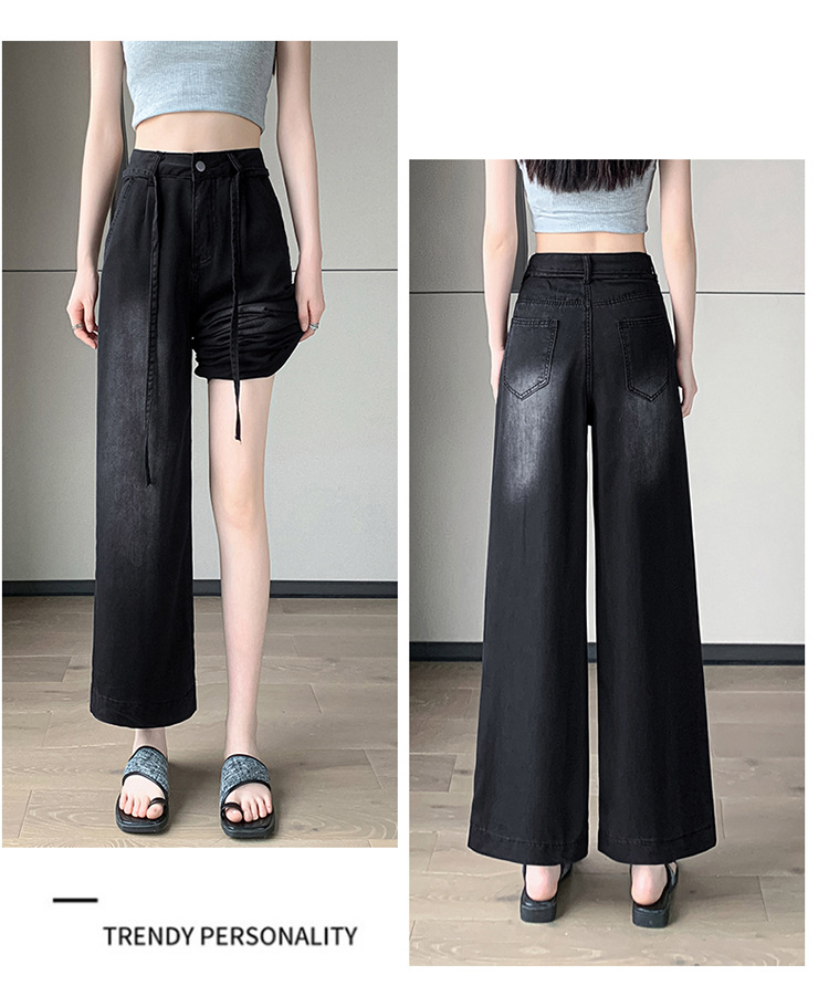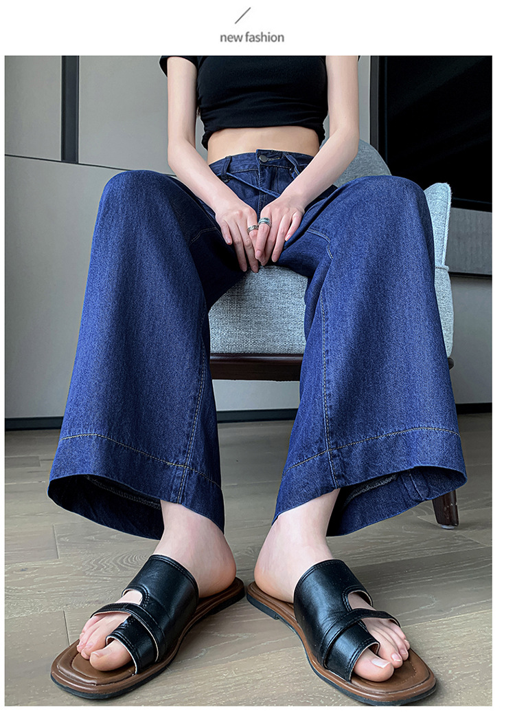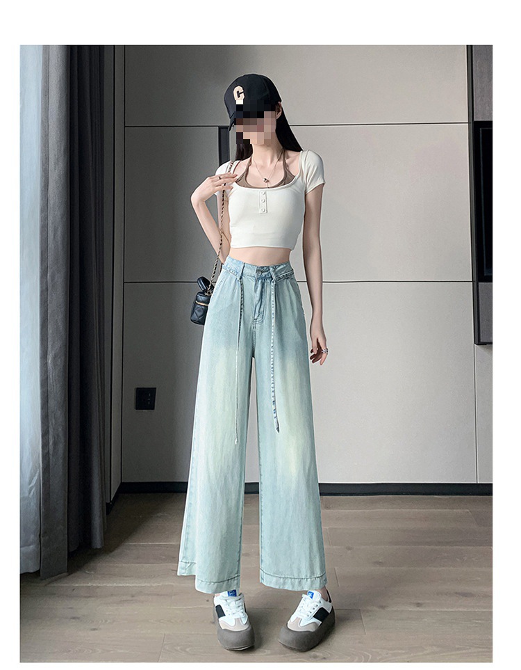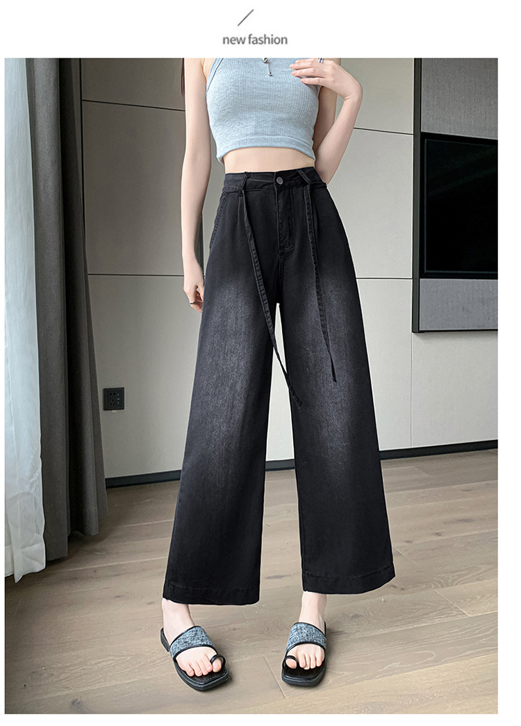 슈퍼 소프트 텐셀 수직 느슨한 와이드 레그 할머니 바지 그리기 Lyocell 쿨 간단한 9 포인트 작은 데님 여성스토어 가기