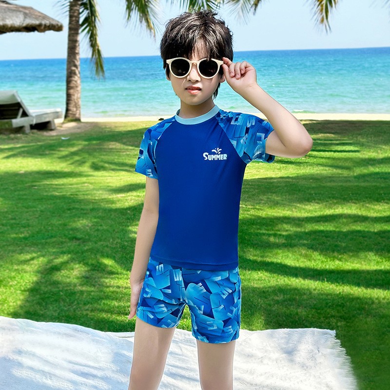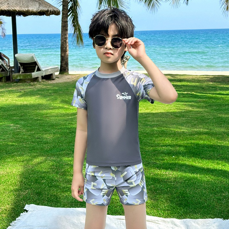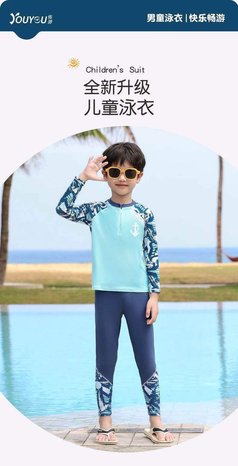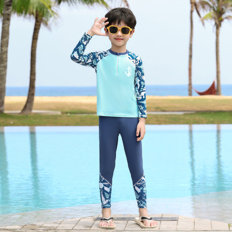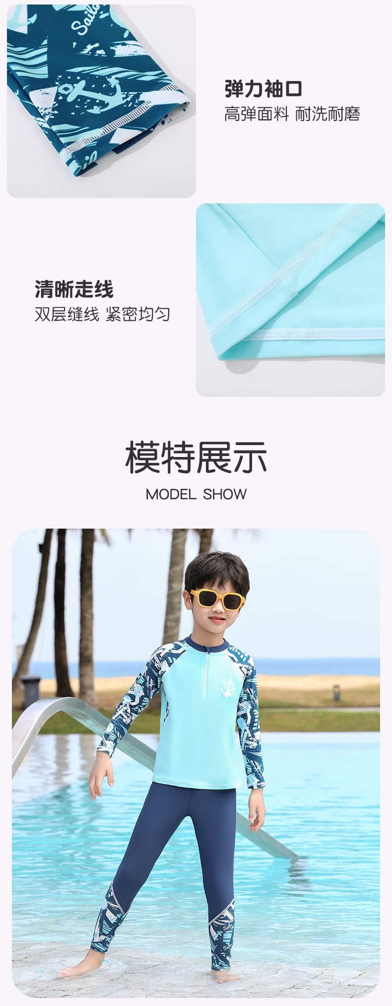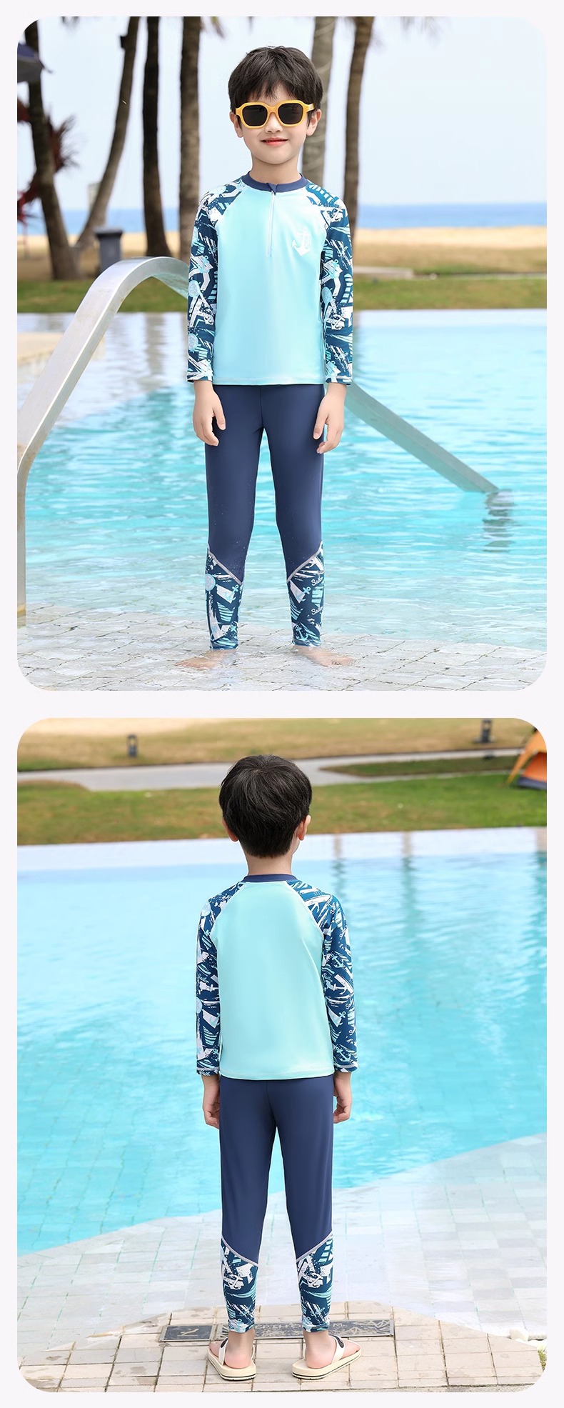 아동용 수영복 소년 스플릿 패션 긴팔 긴 바지 수영복 2025 새로운 중대형 아동용 소년 수영복 장비