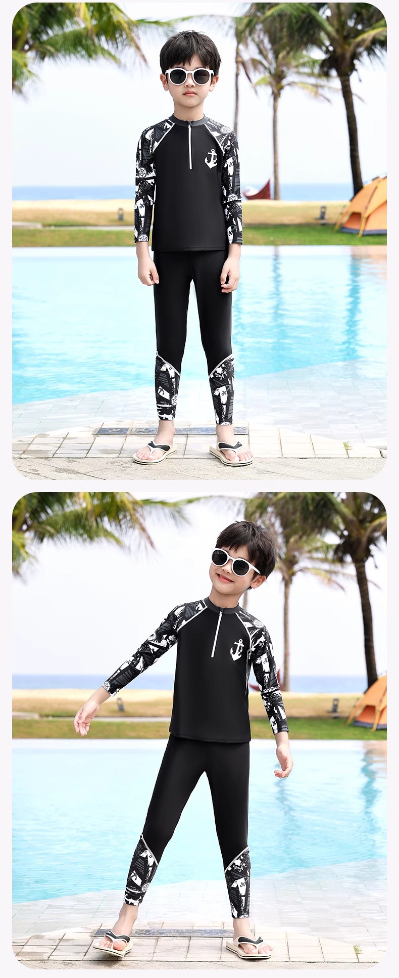아동용 수영복 소년 스플릿 패션 긴팔 긴 바지 수영복 2025 새로운 중대형 아동용 소년 수영복 장비스토어 가기