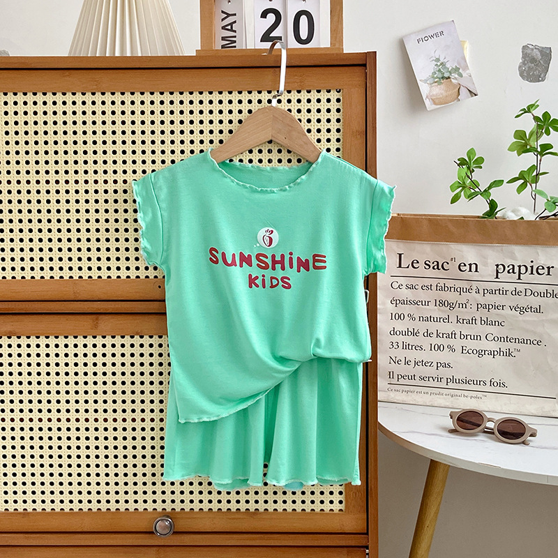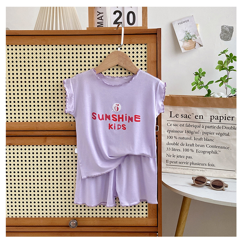 여자 반팔 반바지 모달 투피스 세트 러플 소매 잠옷 홈 의류 세트 아기 여름 에어컨 옷