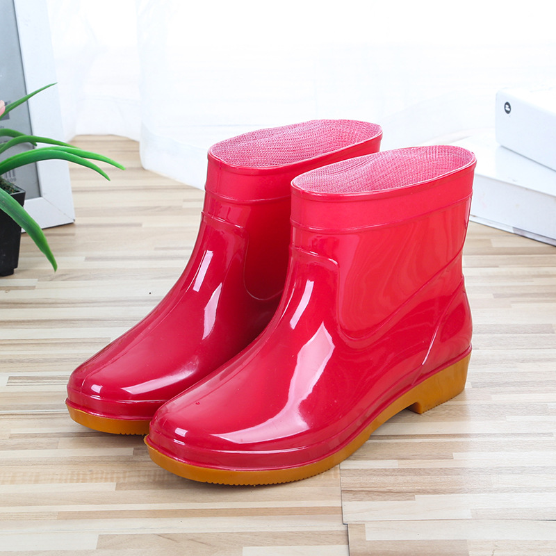 레인 부츠 여성용 낮은 미끄럼 방지 패션 주방 여성용 비 부츠 짧은 유행 워터 슈즈 쇠고기 단독 착용 방지 성인 워터 슈즈