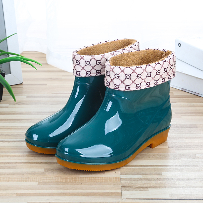 레인 부츠 여성용 낮은 미끄럼 방지 패션 주방 여성용 비 부츠 짧은 유행 워터 슈즈 쇠고기 단독 착용 방지 성인 워터 슈즈스토어 가기