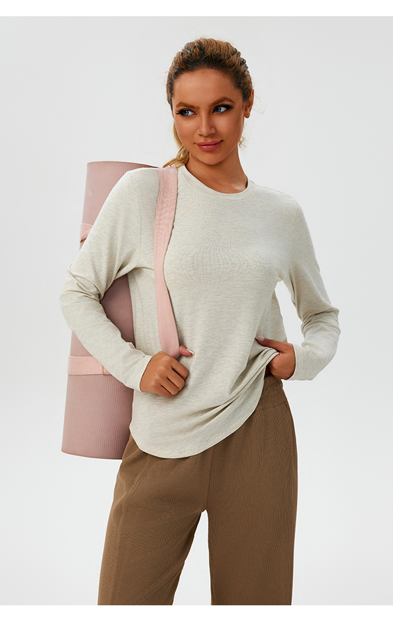 신상 라운드넥 긴팔 상의 여성 캐주얼 다용도 편안한 슬림 심플 스포츠 피트니스 트레이닝 요가복스토어 가기