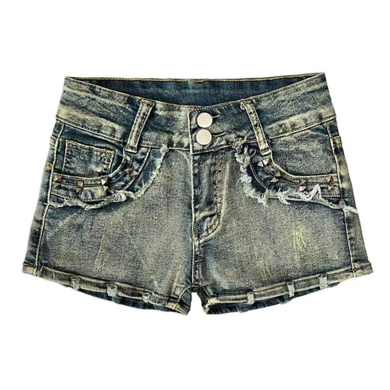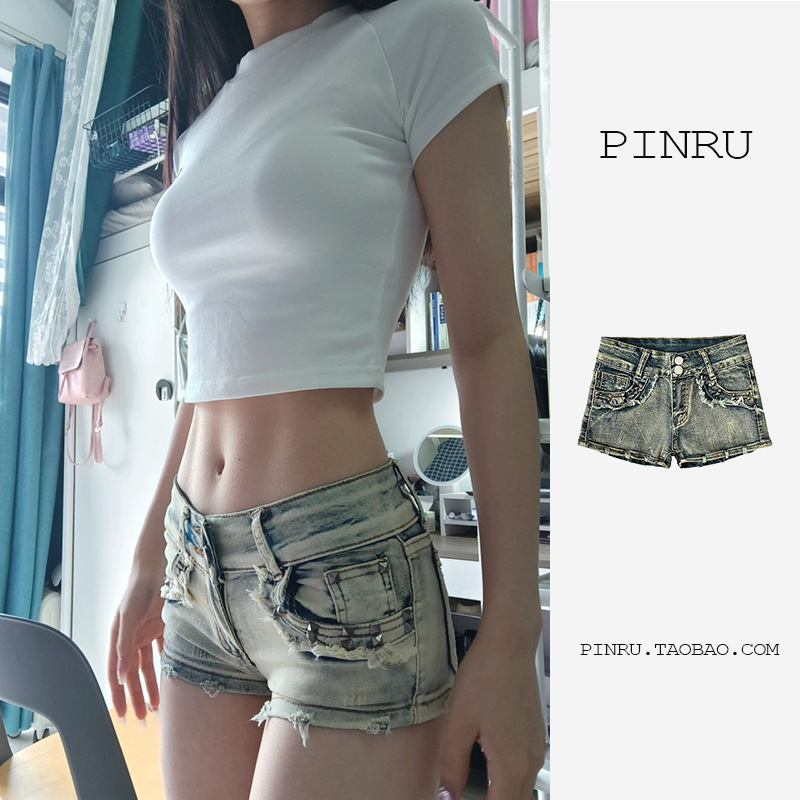 미국 스타일 섹시한 뜨거운 소녀 낮은 허리 데님 반바지 여성의 2024 여름 새로운 슬림핏 슬리밍 짧은 핫 바지스토어 가기