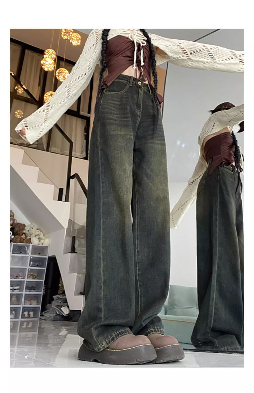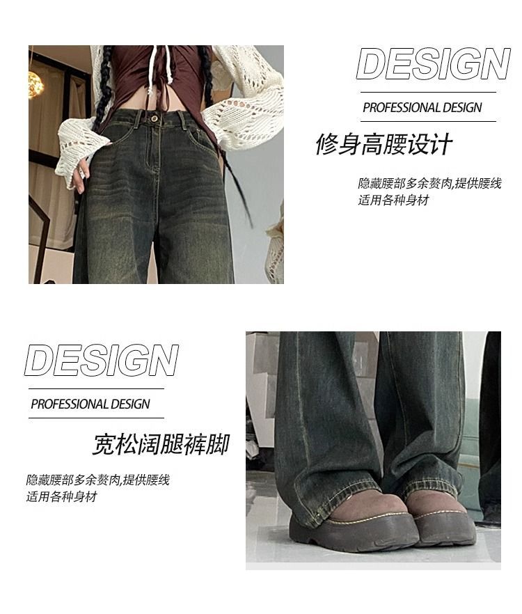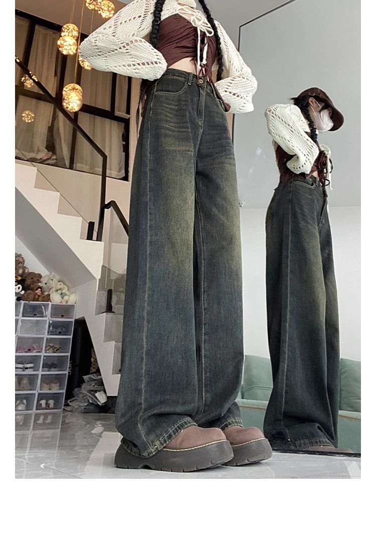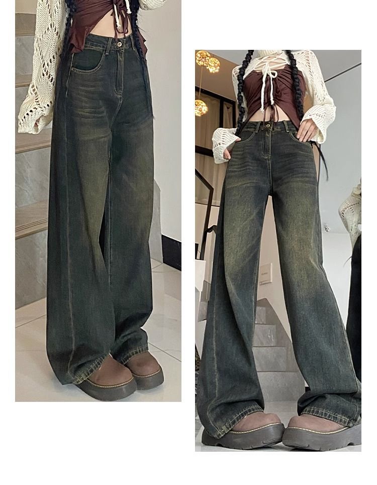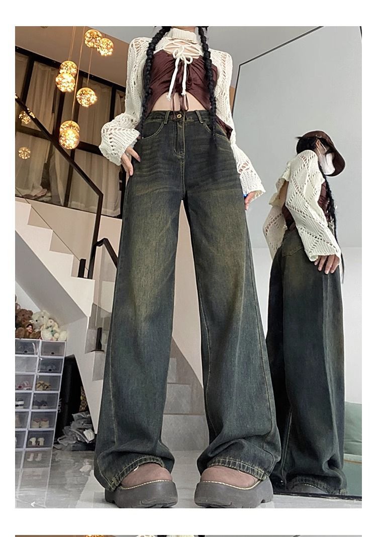 시멘트 그레이 올드 스트레이트 레그 청바지 여성용 하이 웨이스트 2024 여름 새로운 루즈 슬리밍 올 매치 스트레이트 레그 팬츠스토어 가기