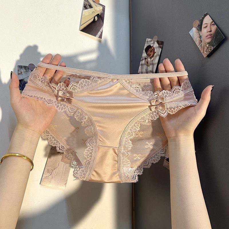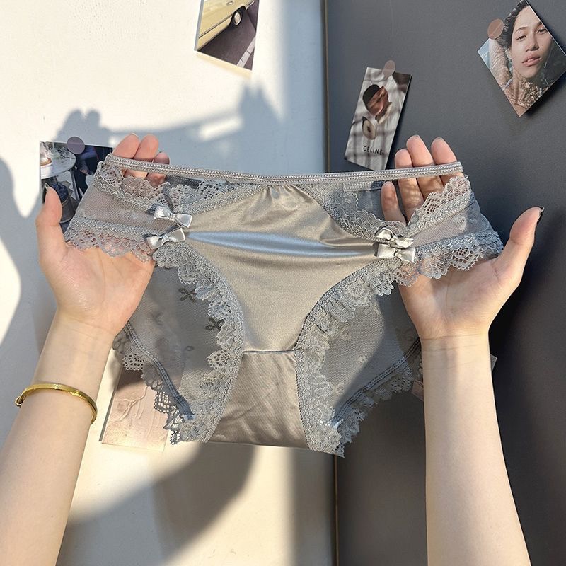 프랑스 스타일 순수한 반투명 레이스 활 속옷 여성의 여름 얇은 통기성 섹시 코튼 Crotch 브리프