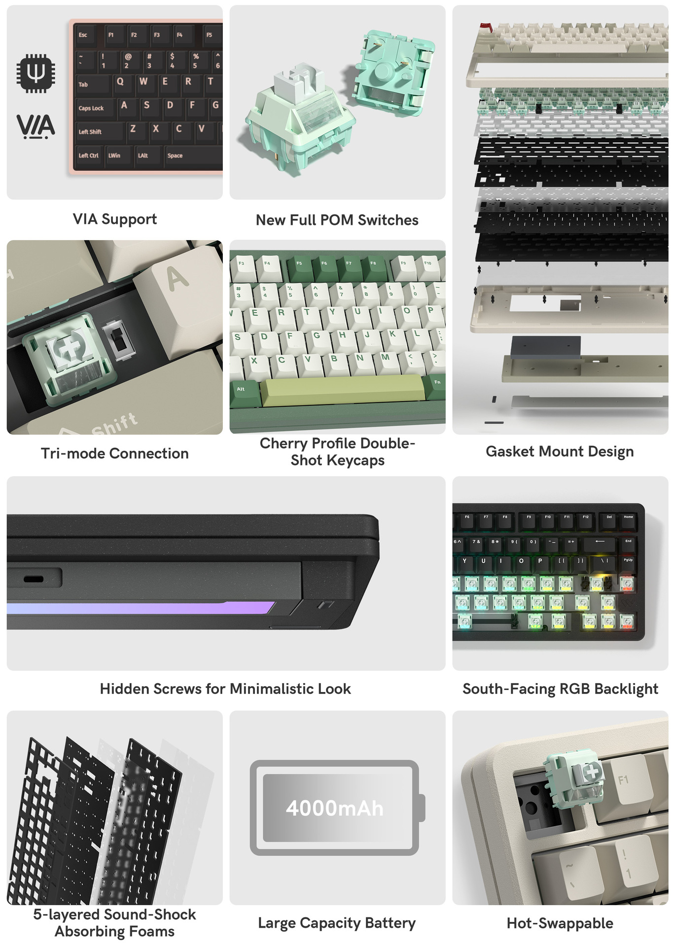 WomierSK75 키보드 75% 레이아웃 알루미늄 키보드 키 캡 PBT 키 캡 PP 포지셔닝 플레이트 비 75