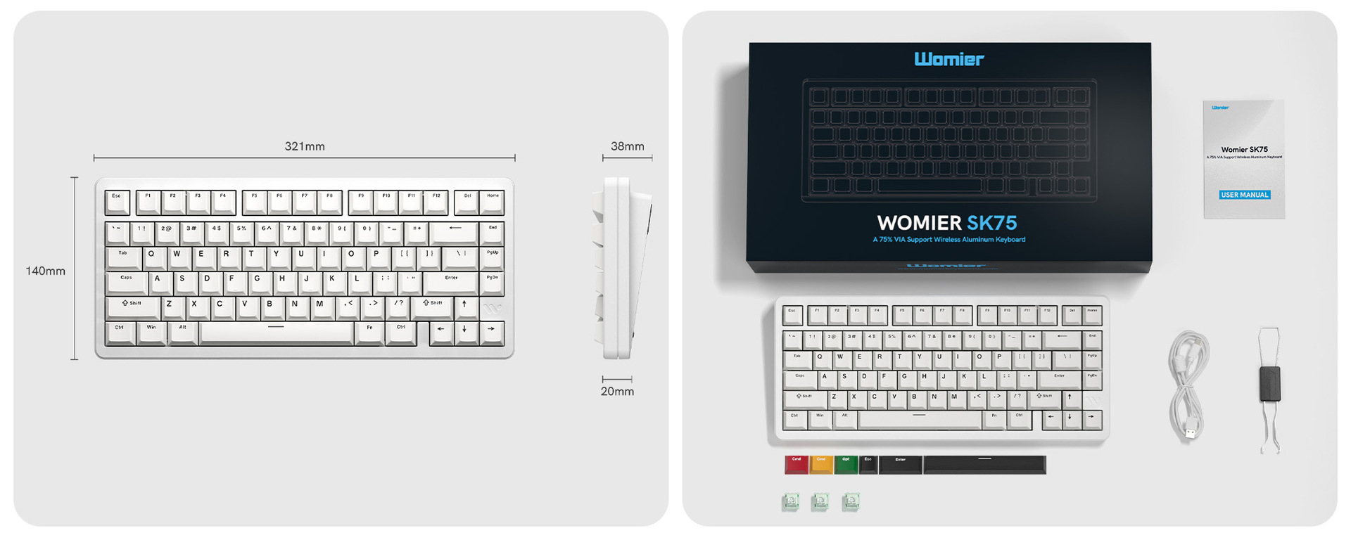 WomierSK75 키보드 75% 레이아웃 알루미늄 키보드 키 캡 PBT 키 캡 PP 포지셔닝 플레이트 비 75스토어 가기