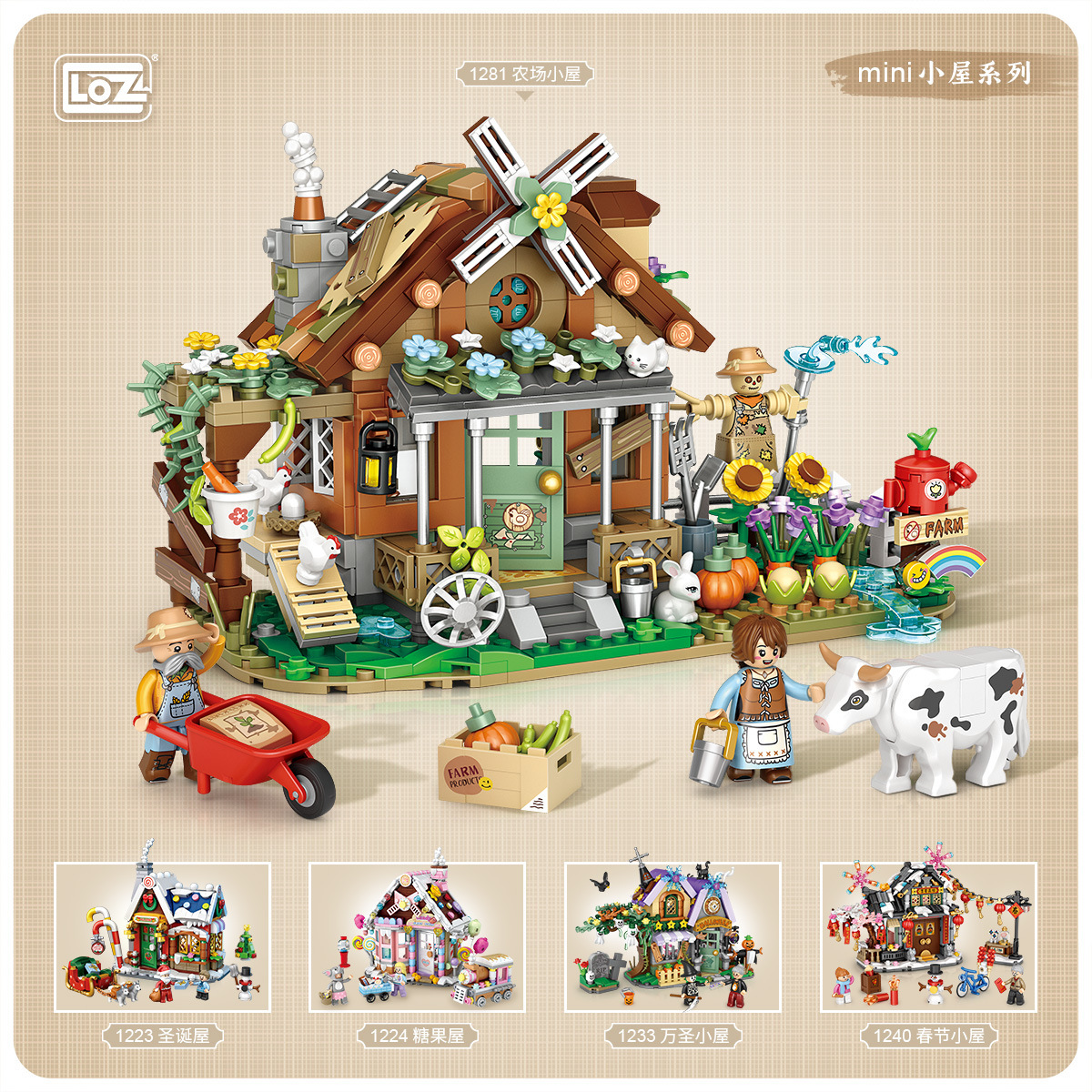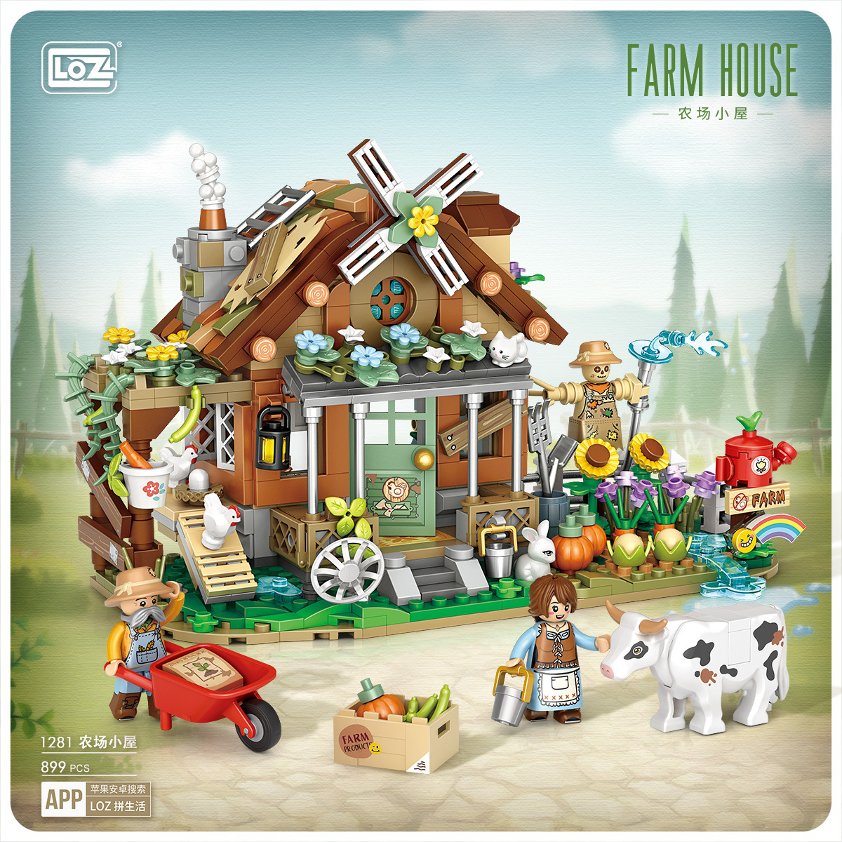 LOZ Li Zhi 빌딩 블록 1281 농장 오두막 풍차 미니 세분화 된 어린이 장난감 국경 도매스토어 가기