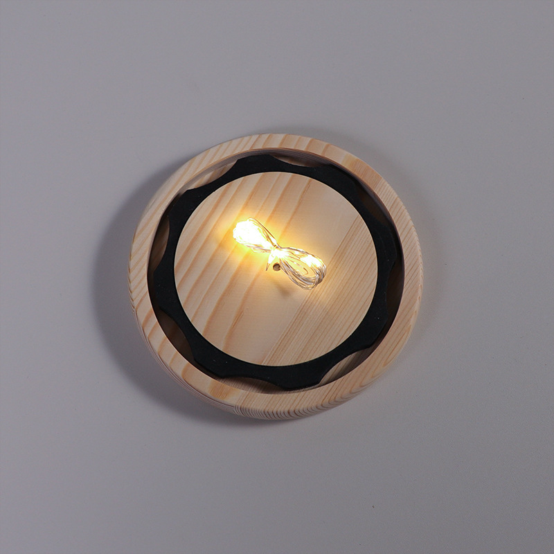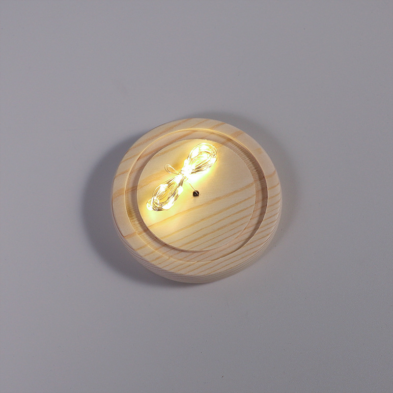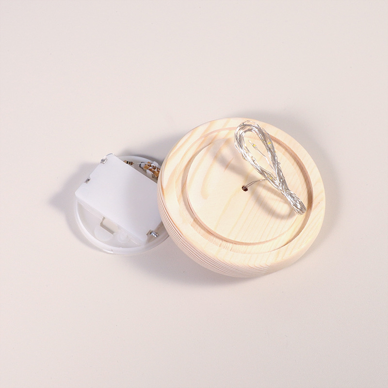 라운드 배터리 박스 구리 와이어 램프 라운드 우드 베이스 불멸의 꽃 밤 빛 유리 커버 장식 구리 와이어 LED 라이트 스트링