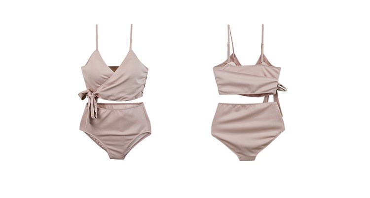 새로운 한국 스타일 섹시한 높은 허리 배꼽 튀긴 강철 푸시 업 스플릿 비키니 슬림 살 커버 온천 수영복
