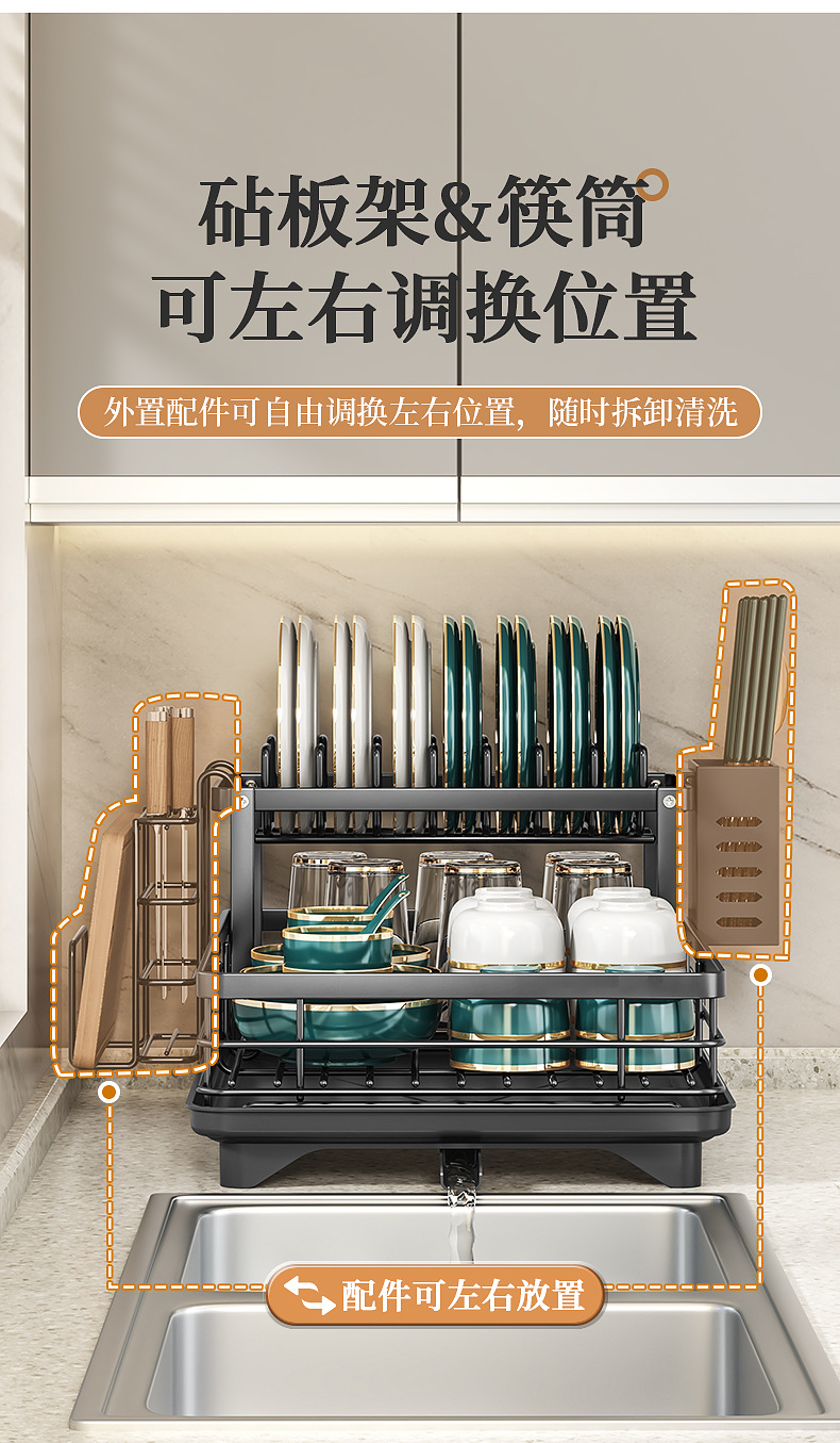 국경 간 주방 배수 랙 보울 및 젓가락 보관 상자 그릇 및 접시 랙 가정용 싱크 건조 요리 저장 랙 식기 보관스토어 가기