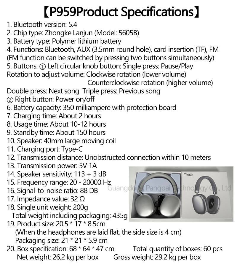 국경 간 폭발 헤드 마운트 P959 무선 블루투스 헤드셋 지원 카드 전자 상거래 애플 휴대 전화 헤드셋스토어 가기
