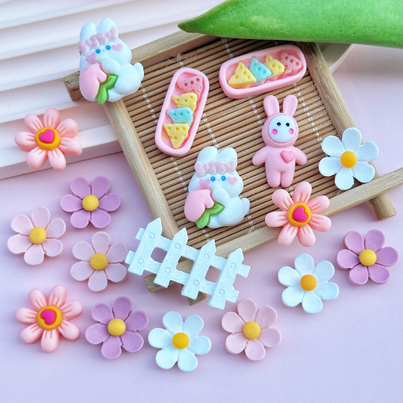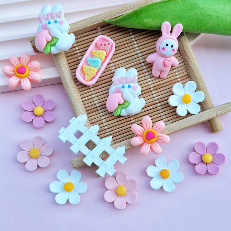 토끼 꽃 울타리 시리즈 수지 DIY 액세서리 휴대 전화 케이스 구멍 신발 패치 헤어핀 헤어 액세서리 소재