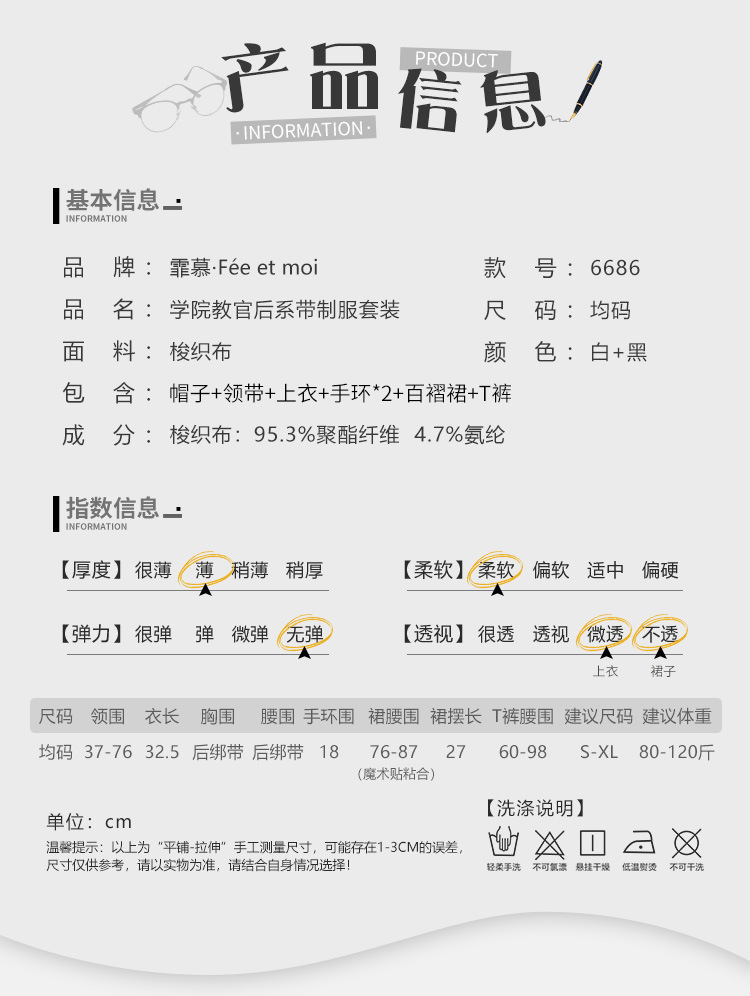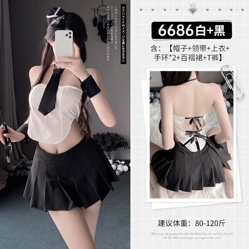 • 6686 흰색과 검은 색 [모자 넥타이 재킷 팔찌 * 200 주름 치마 T 바지]]