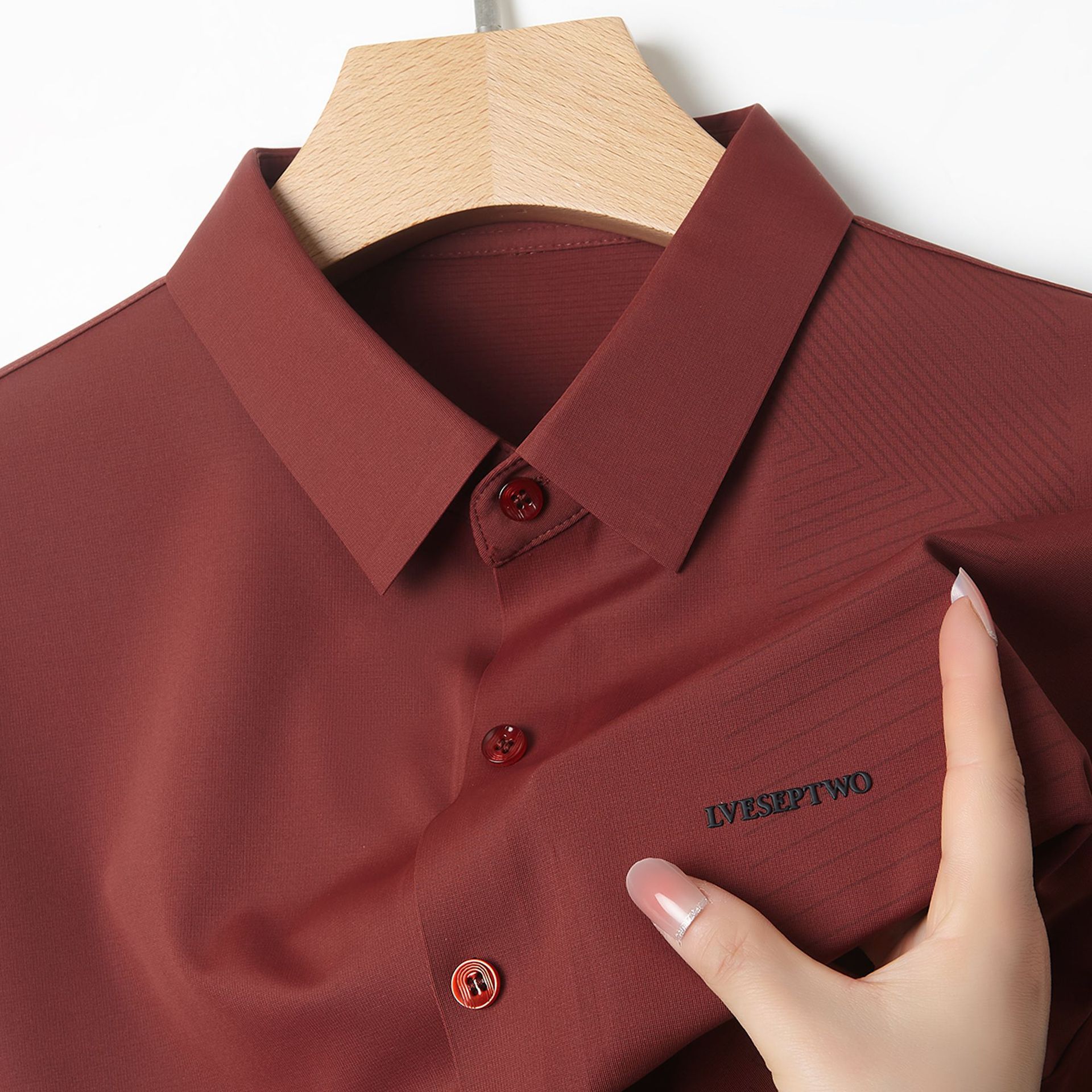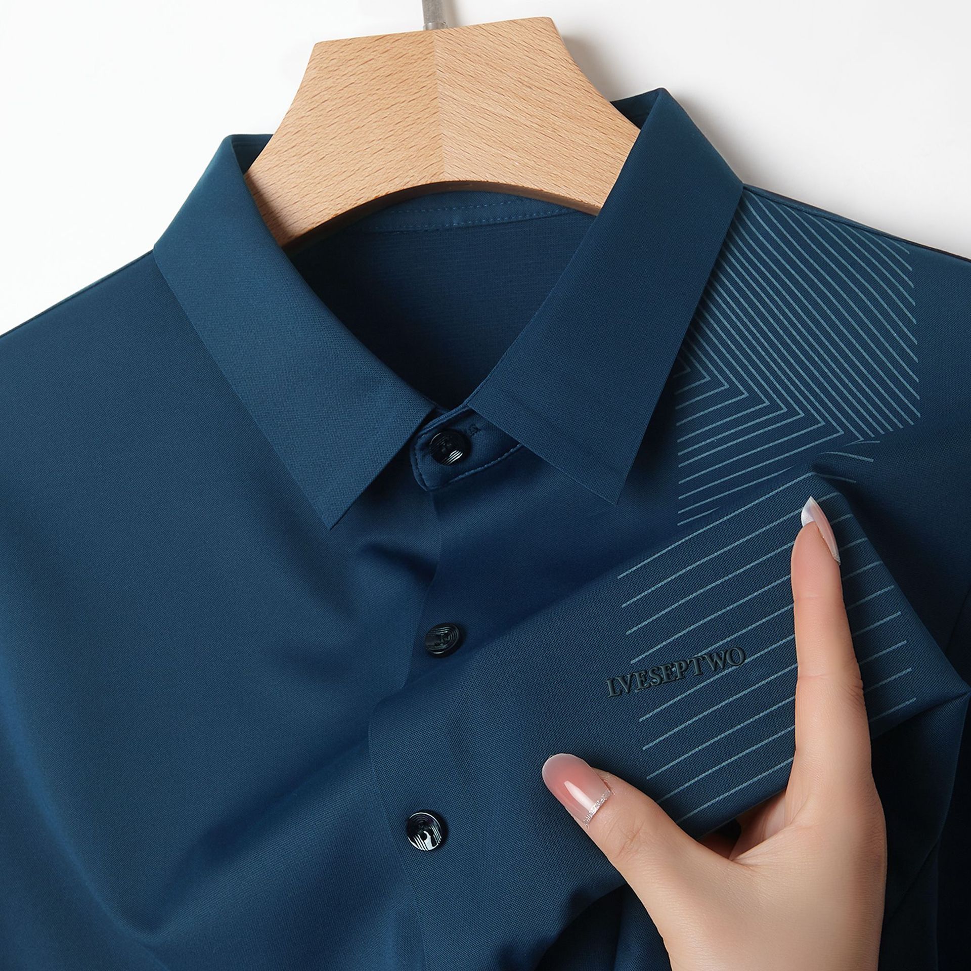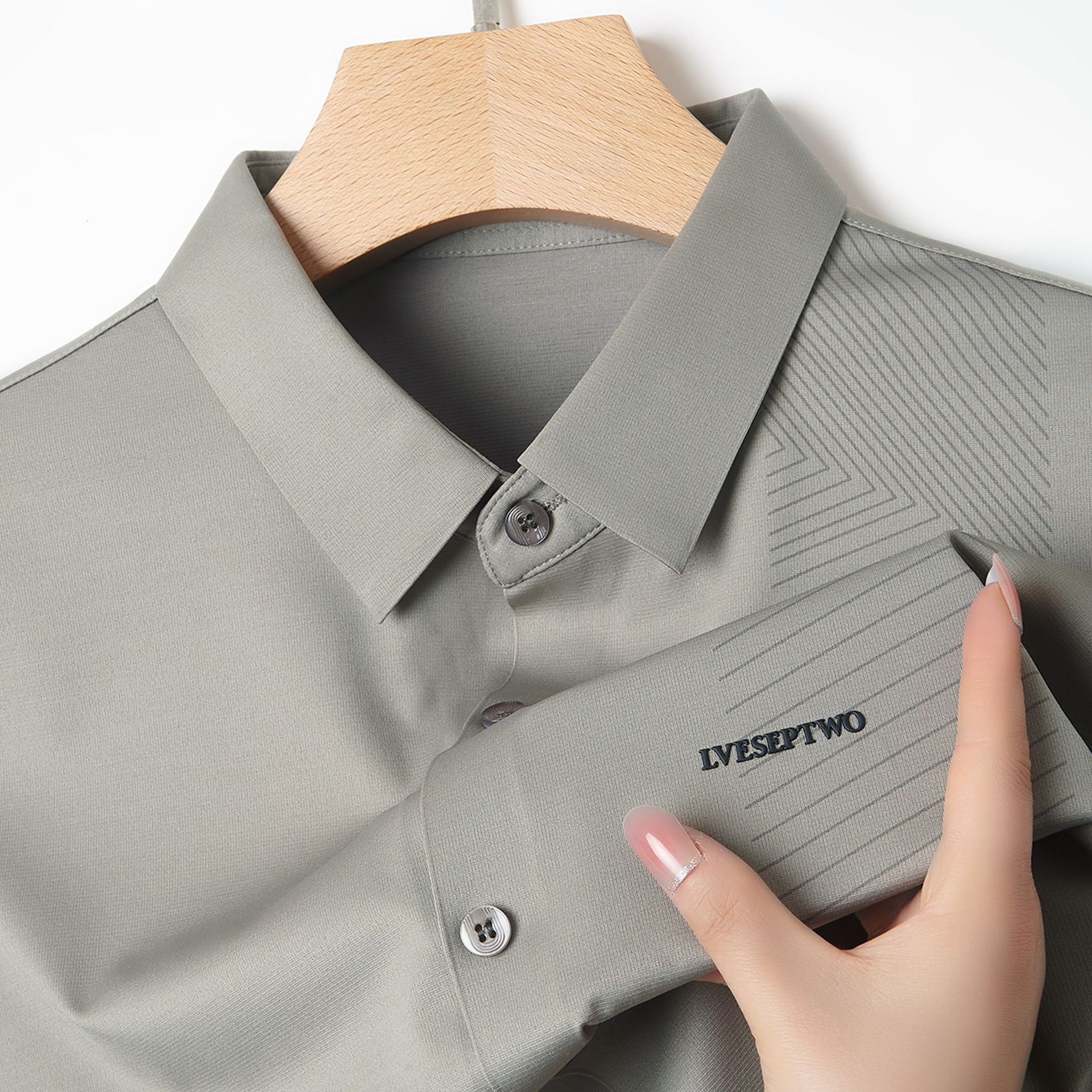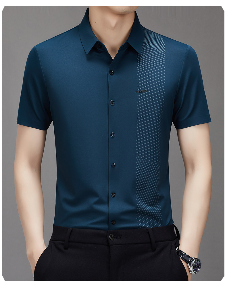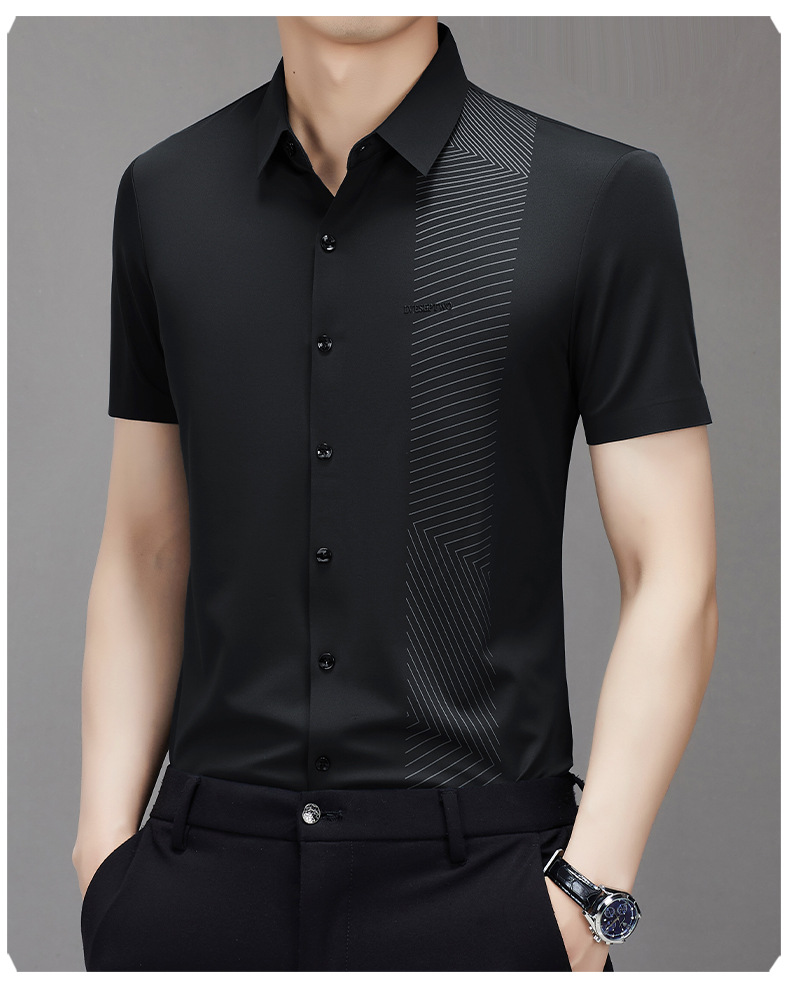 하이 엔드 원활한 핫 스탬핑 편지 아이스 실크 폴로 셔츠 짧은 소매 여름 얇은 남성 비즈니스 캐주얼 중년 아빠 복장