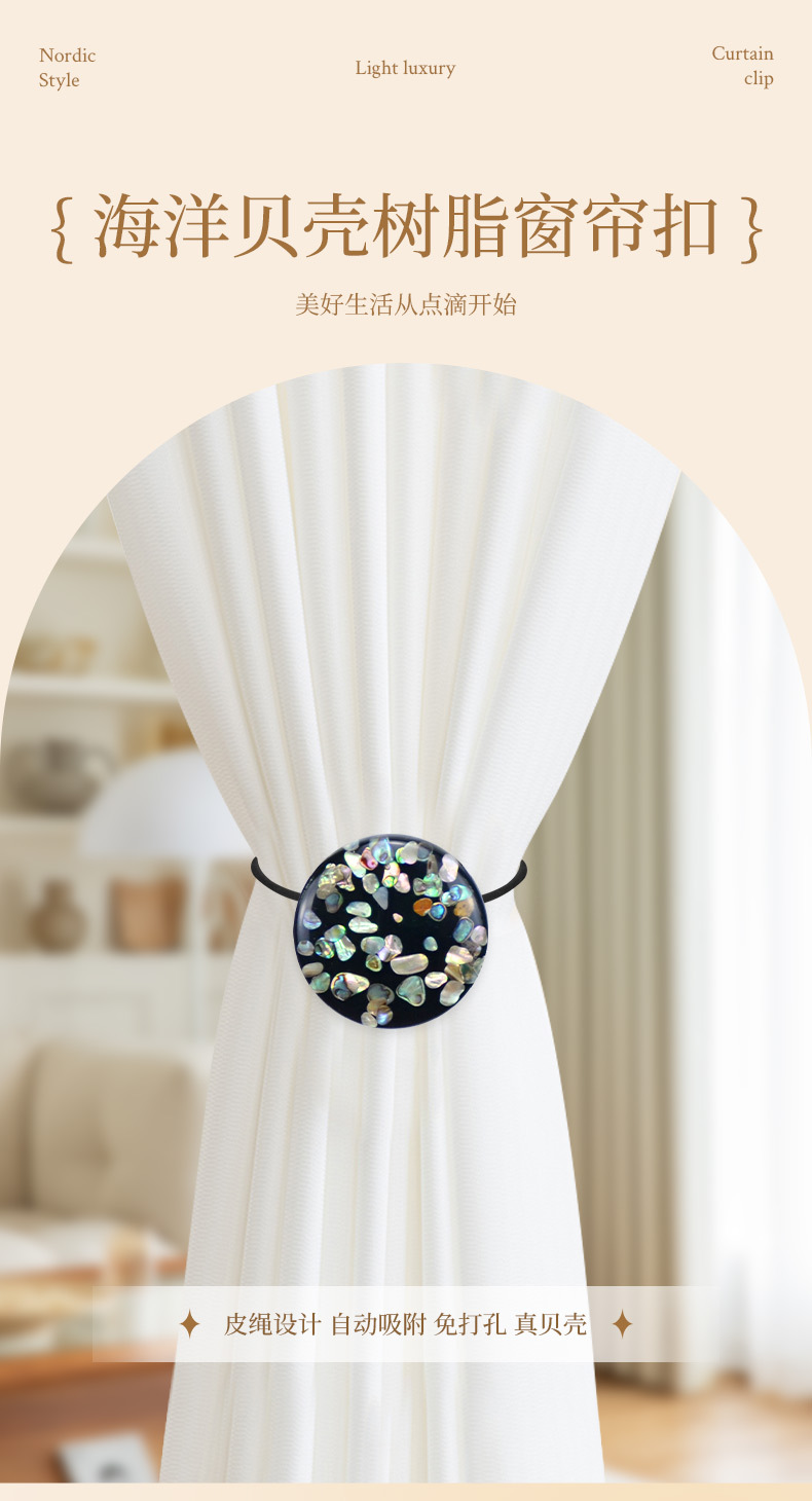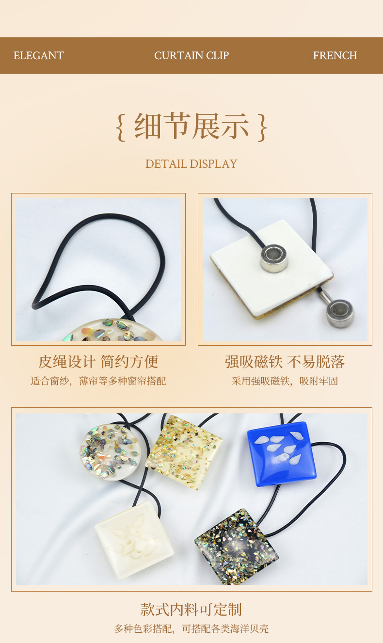 오션 쉘 마그네틱 커튼 버클 수지 가죽 로프 커튼 스트랩 현대 간단한 침실 거실 커튼 장식