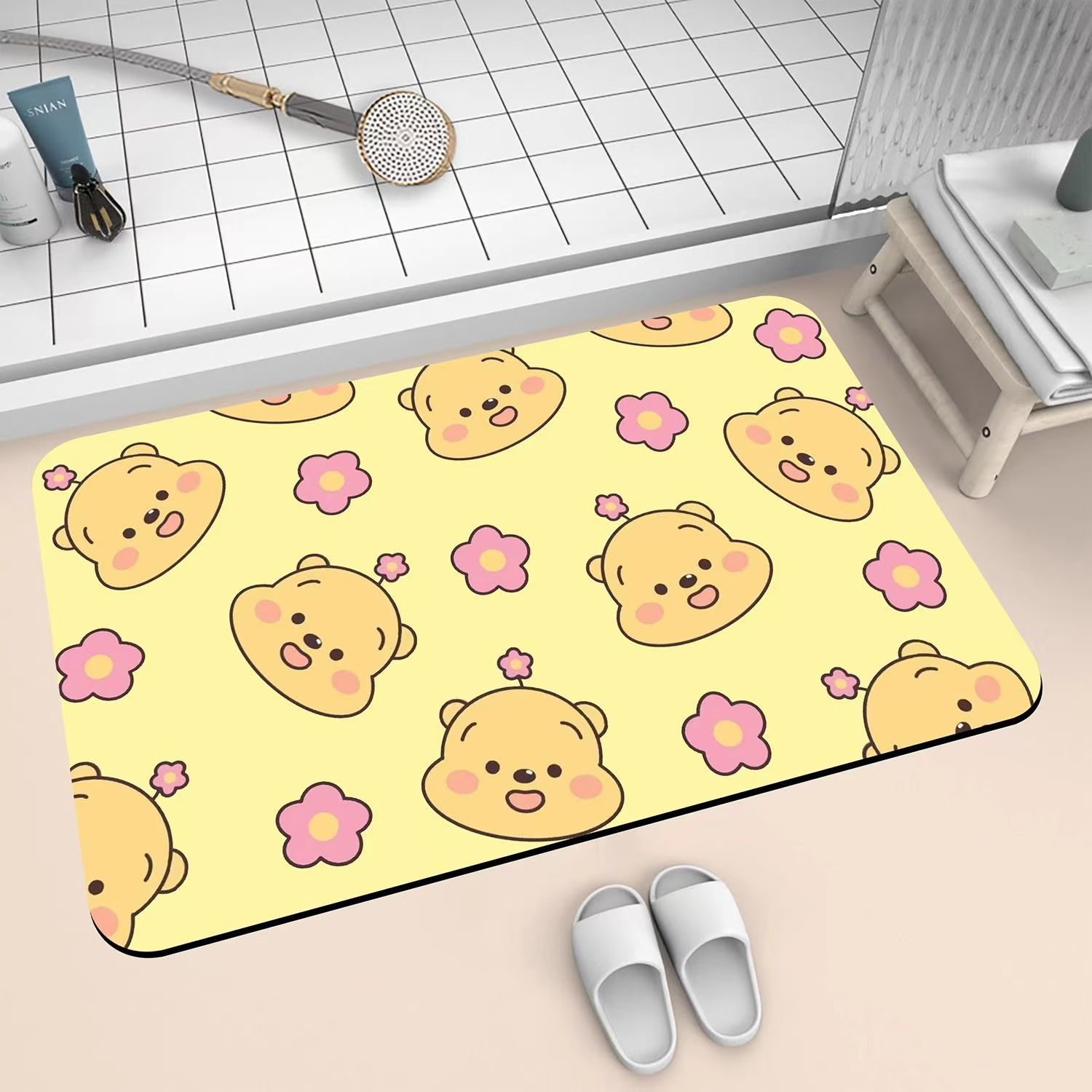 만화 위니 푸들 디 아톰 진흙 바닥 매트 가정용 욕실 바닥 매트 화장실 문 흡수성 비 슬립 발 매트 입구 문 매트