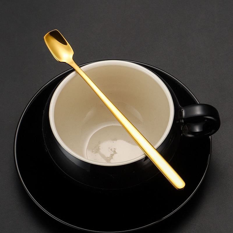 304 스테인레스 스틸 스퀘어 헤드 스푼 긴 손잡이 작은 얼음 숟가락 디저트 스푼 선물 스푼스토어 가기