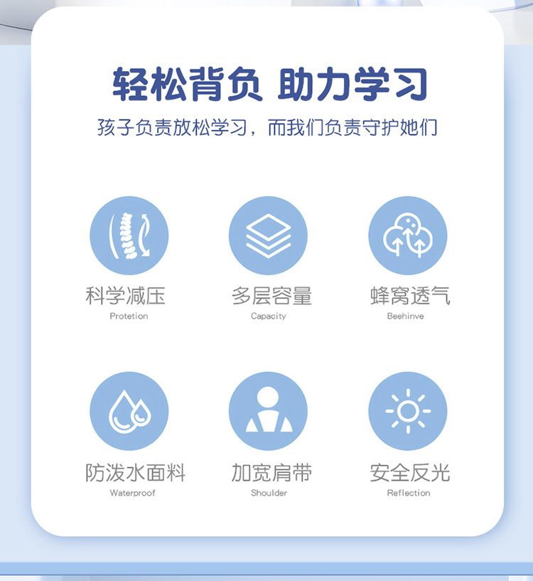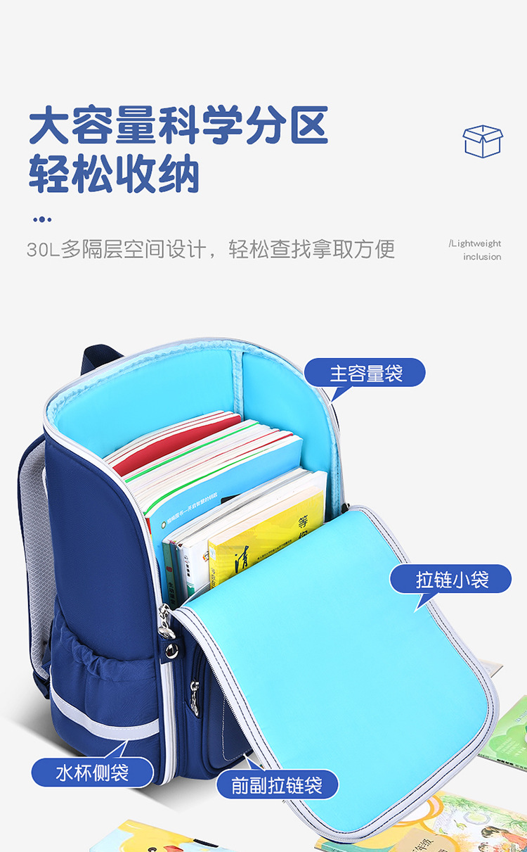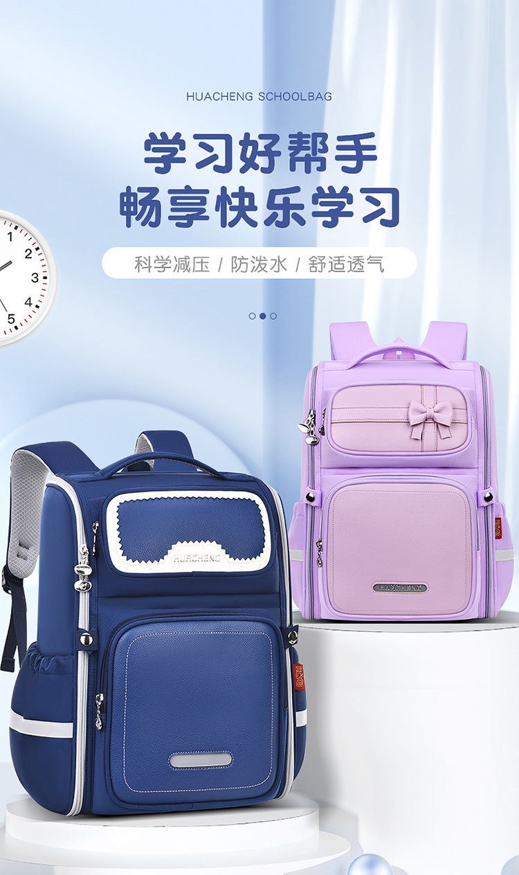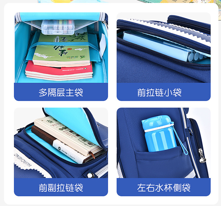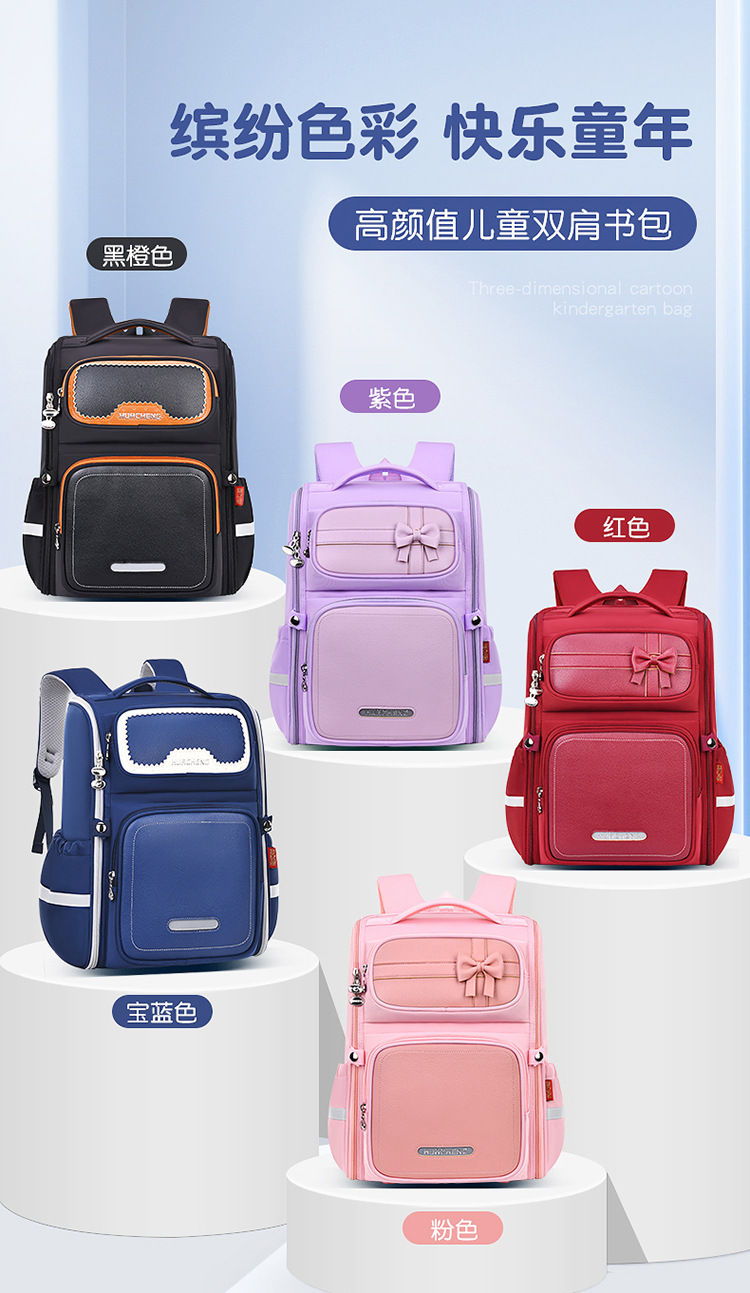 초등학생을위한 새로운 고 가치 어린이 책가방 1-6 학년 남학생과 여학생은 능선 보호 대용량 배낭의 부담을 줄입니다.
