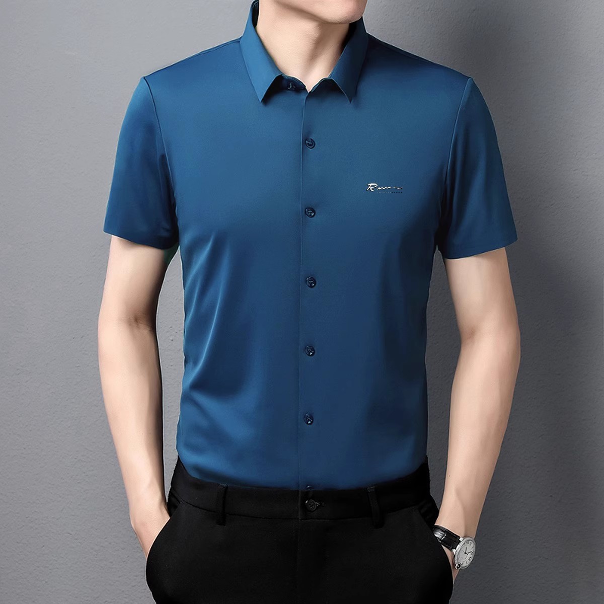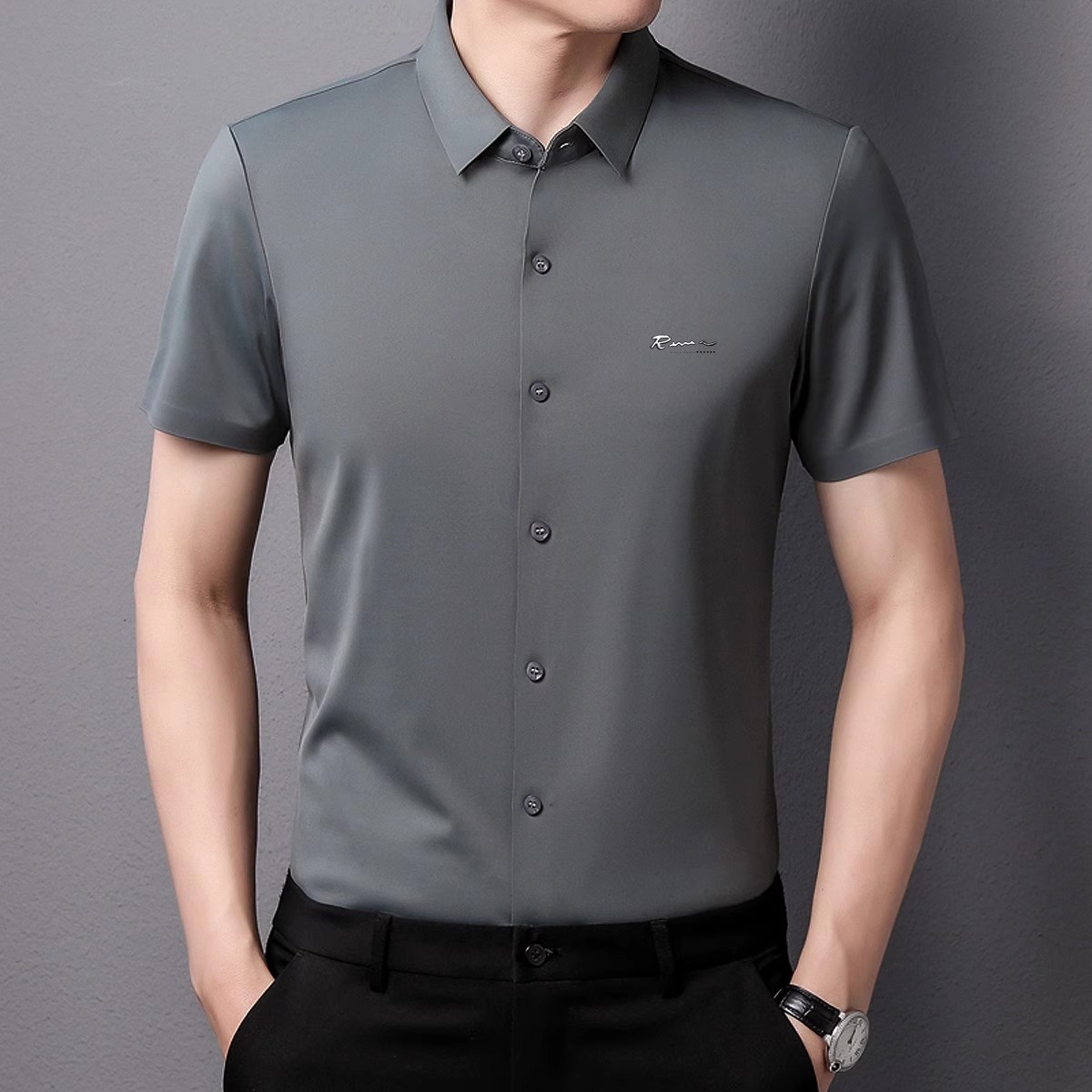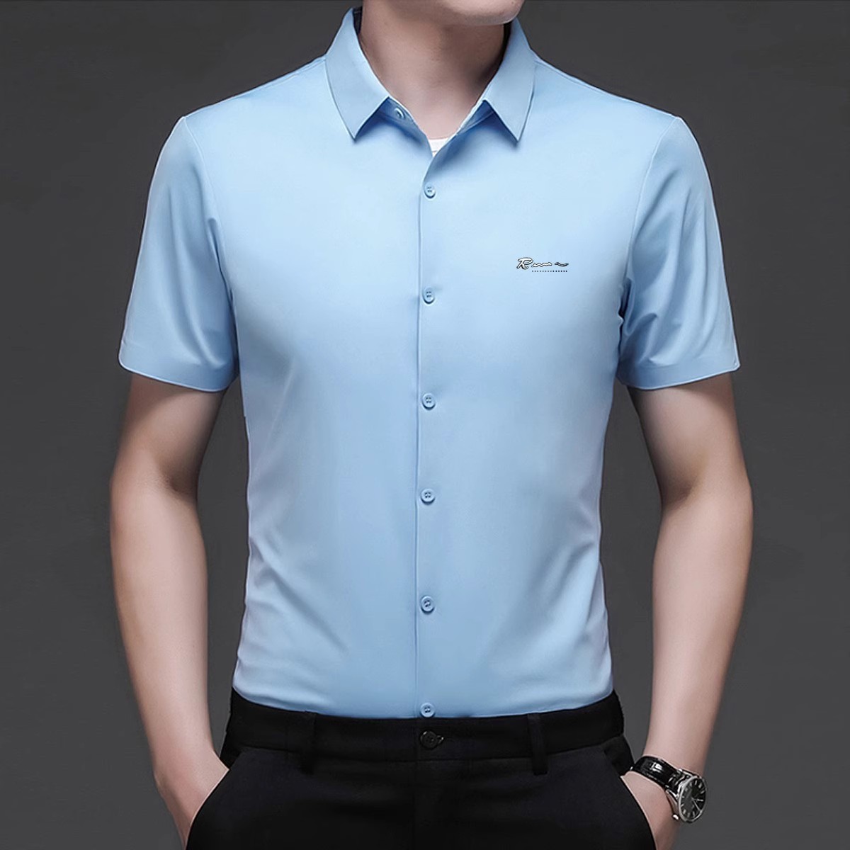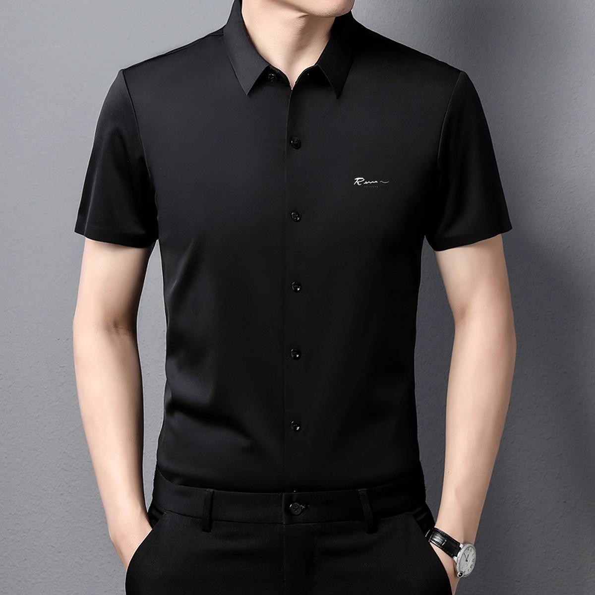여름 새 R-라벨 반팔 셔츠 무표식 남성용 비 다림질 고탄성 중년 및 젊은 비즈니스 캐주얼 남성용 반소매 셔츠