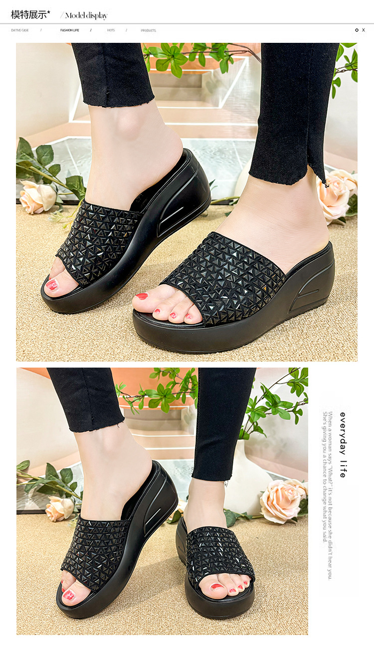 작은 키 여성을 위한 두꺼운 밑창 슬리퍼, 2025년 신상 여름 키높이 슬리퍼, 여성 패션 워터드라인 웨지힐 샌들스토어 가기