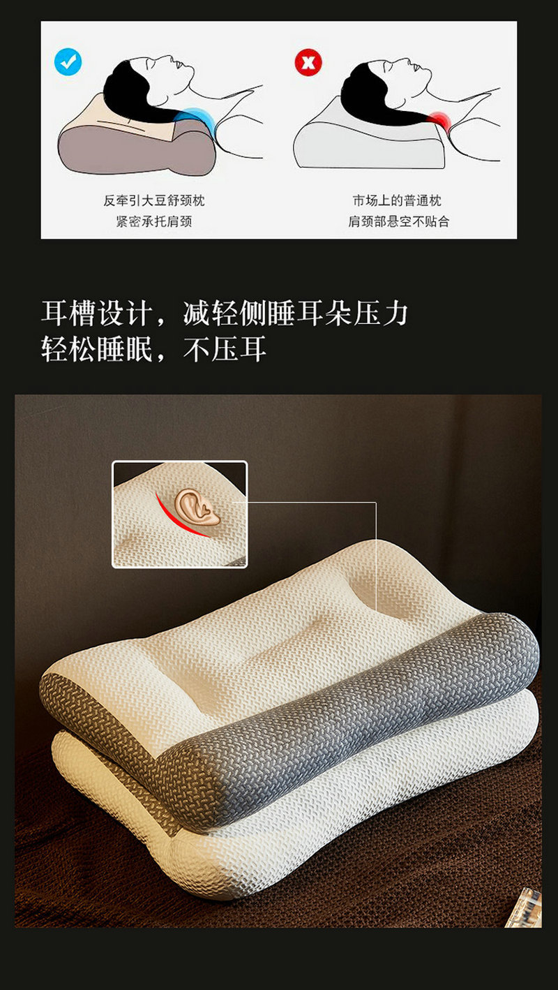 자궁 경부 척추 베개 청소 냄새 없음 가구 조절 가능한 머리 받침 통기성 단일 콩 섬유 베개