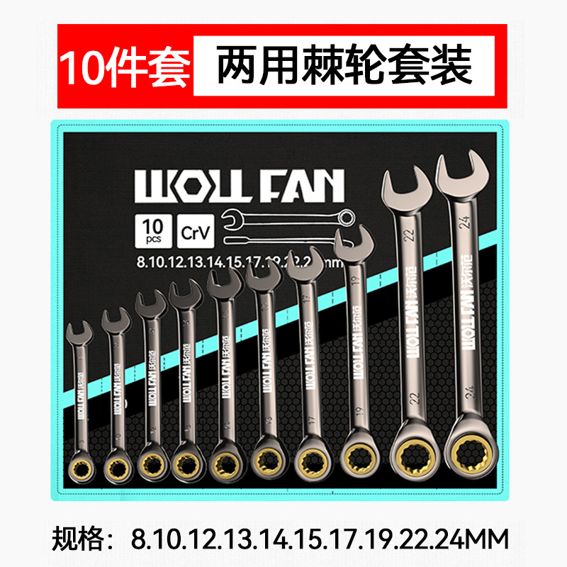 • 블랙 니켈 이중 목적 래칫 렌치 10 피스 세트 8-24mm