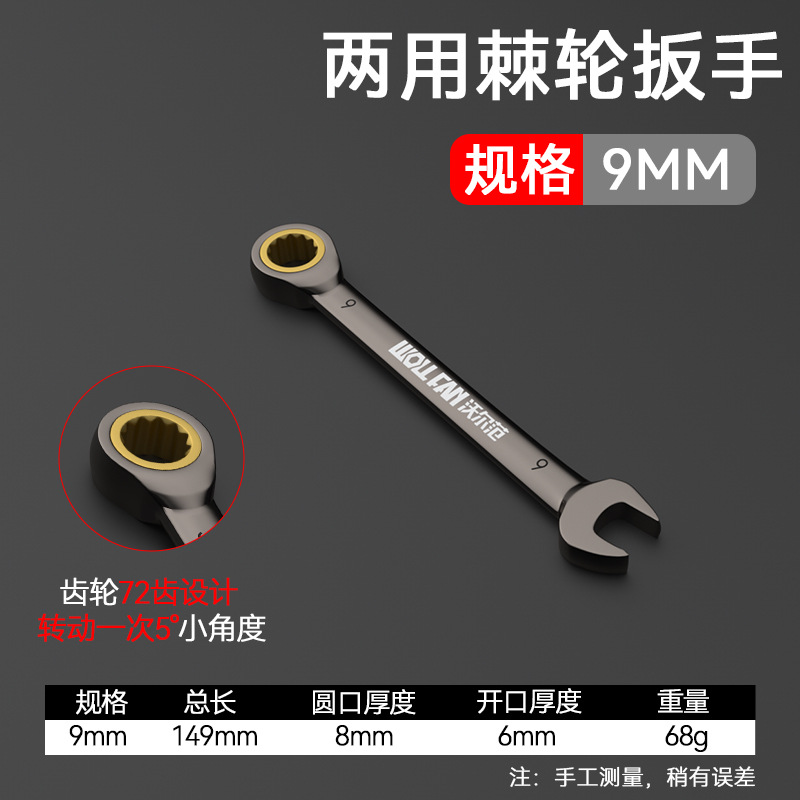 • 블랙 니켈 이중 목적 래칫 렌치 9mm