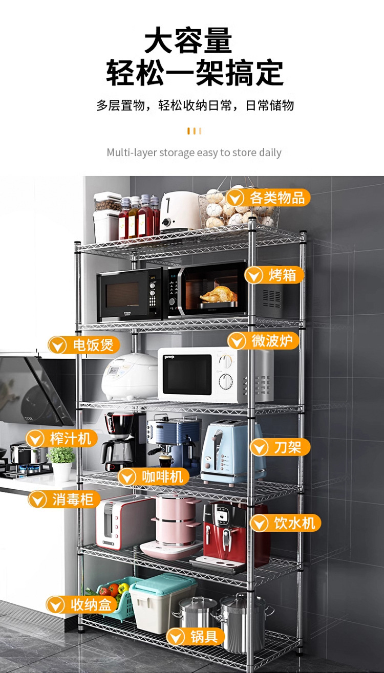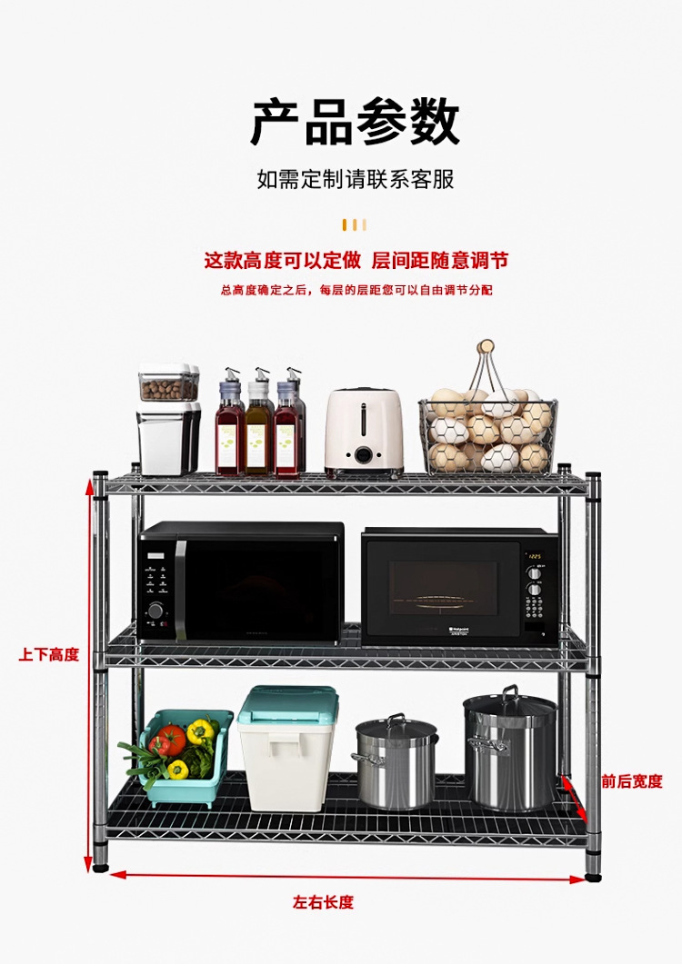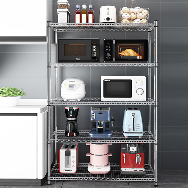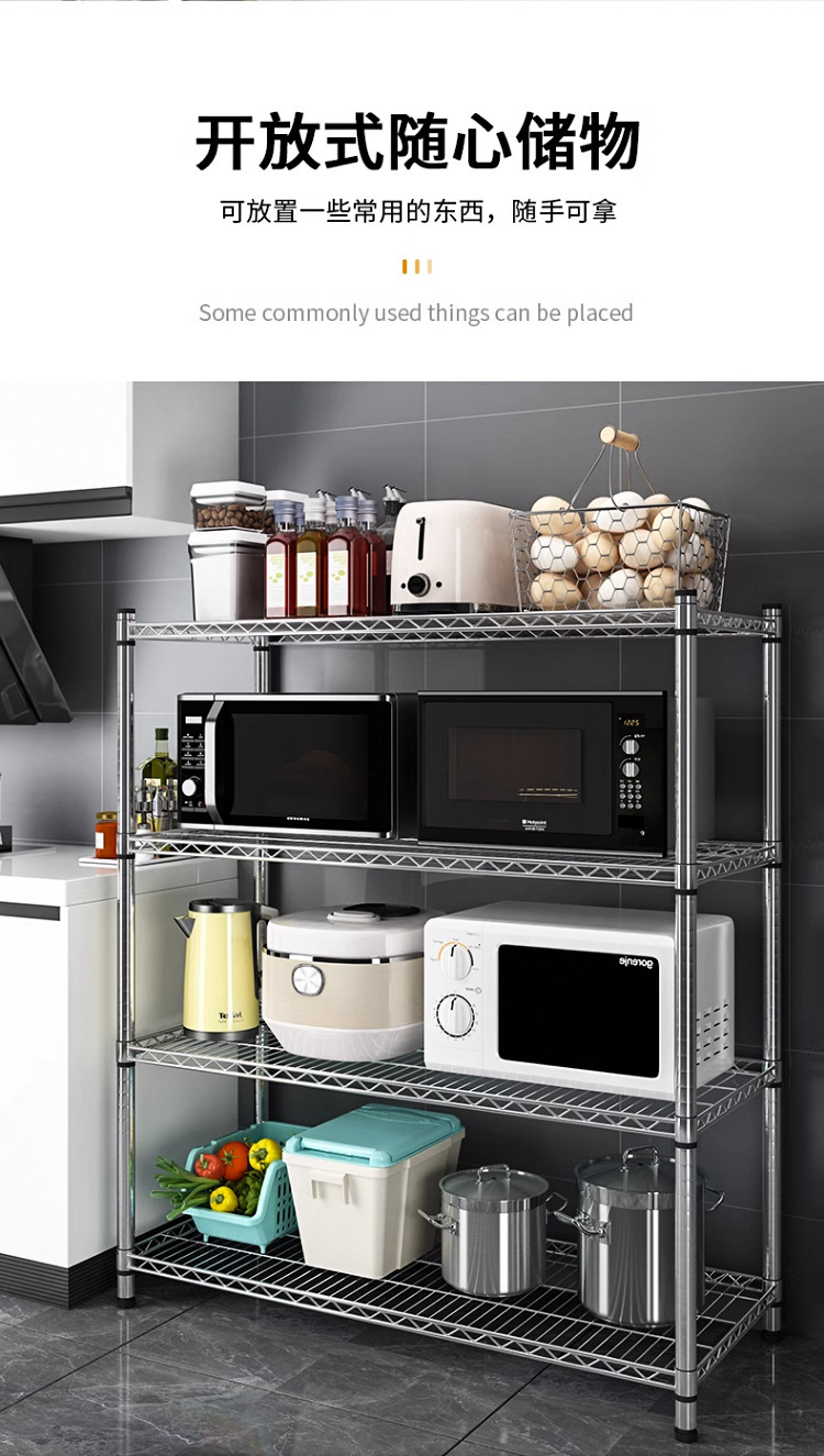 주방 보관 랙 탄소 강철 크롬 도금 저장 랙 발코니 저장 랙 꽃 랙 바닥-바닥-층 가정용 선반 다층 선반