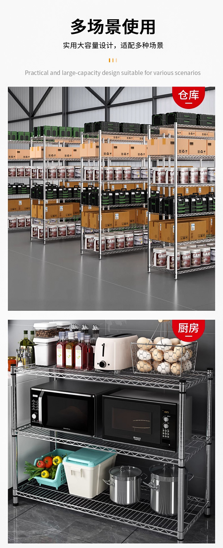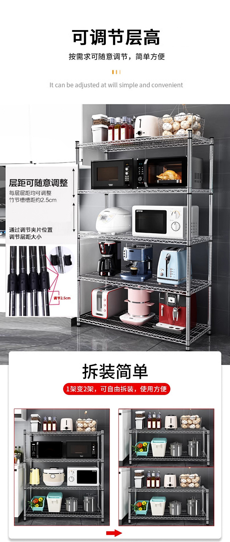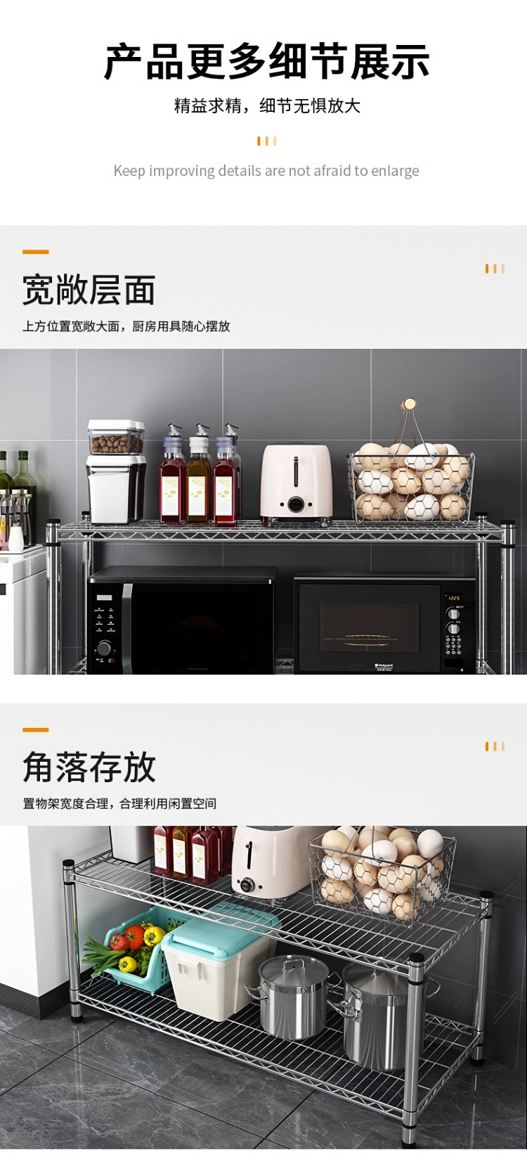 주방 보관 랙 탄소 강철 크롬 도금 저장 랙 발코니 저장 랙 꽃 랙 바닥-바닥-층 가정용 선반 다층 선반