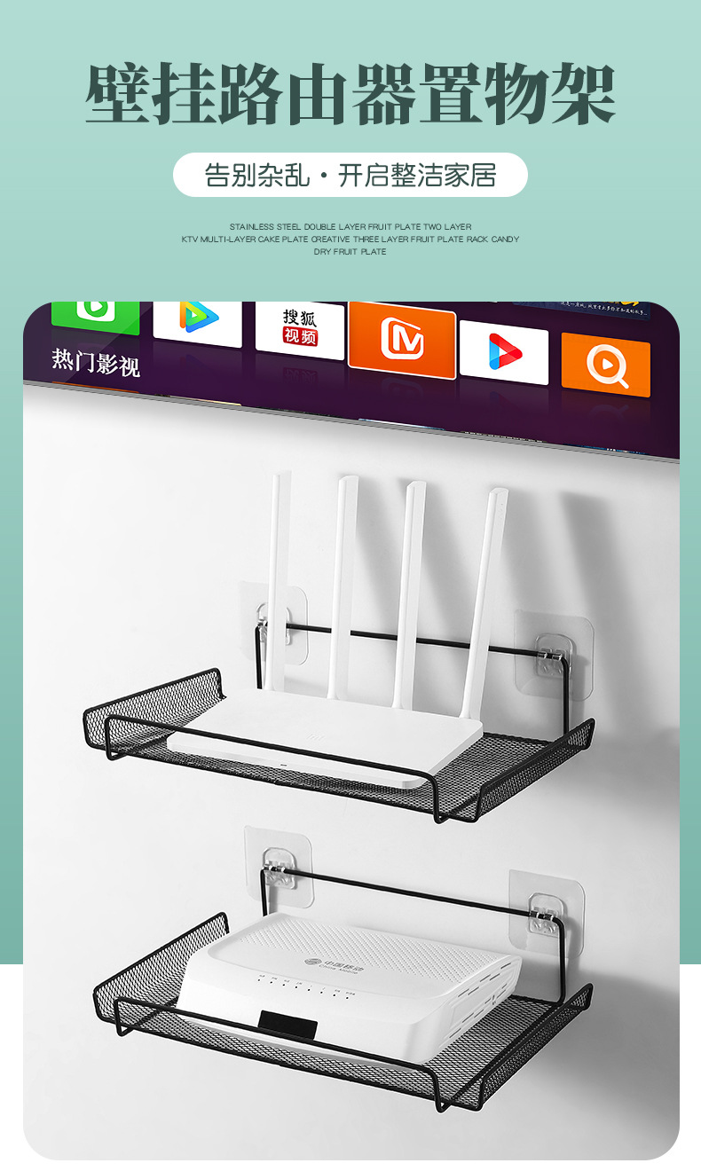 라우터 스토리지 랙 TV 셋톱 박스 벽 스토리지 랙 펀치 무료 무선 WiFi 랙스토어 가기