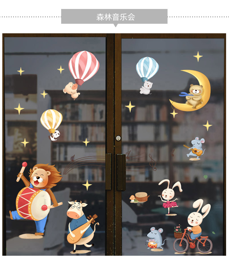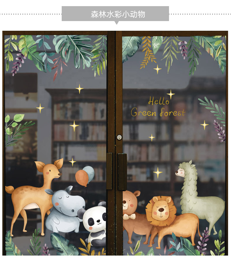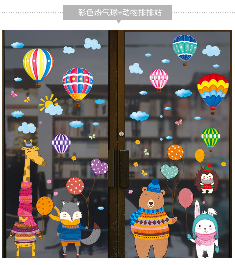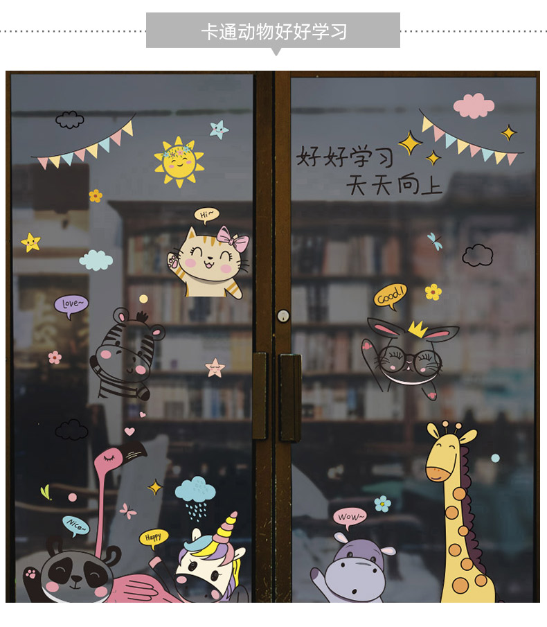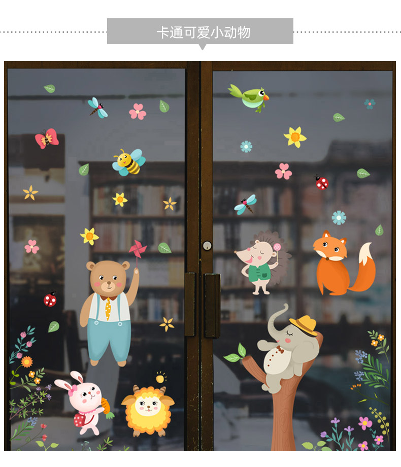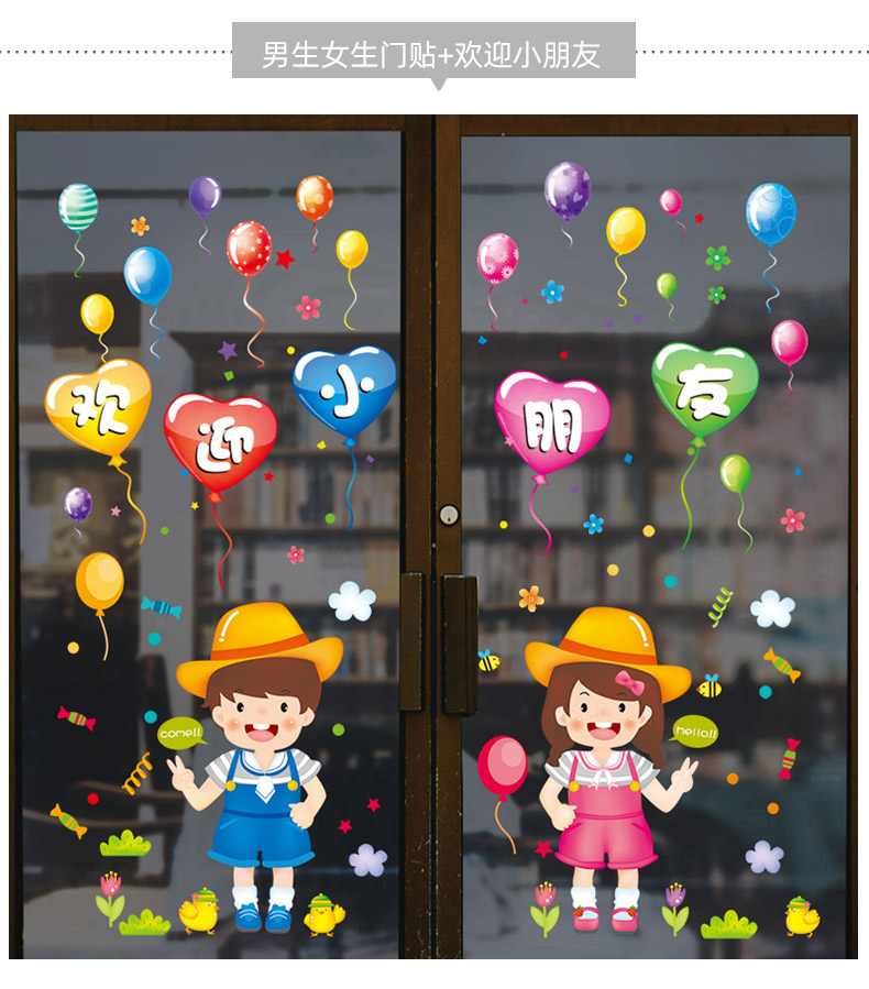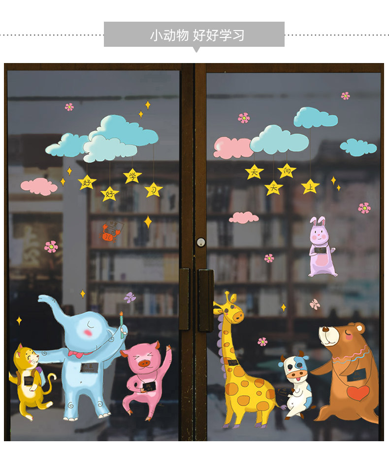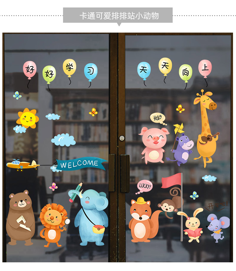 GJU8 유치원 환경 레이아웃 소재 벽 스티커 유리 도어 스티커 자체 접착 어린이 방 벽 장식 창스토어 가기