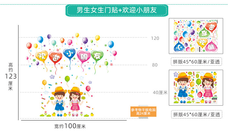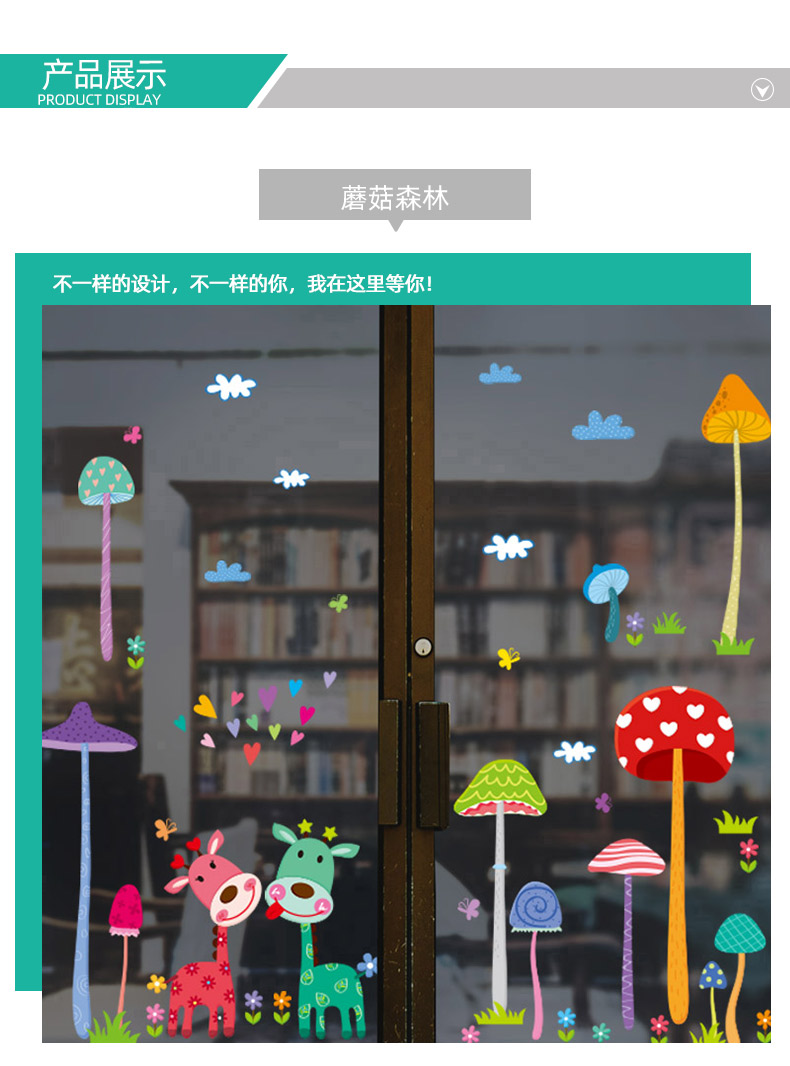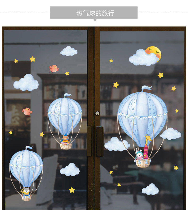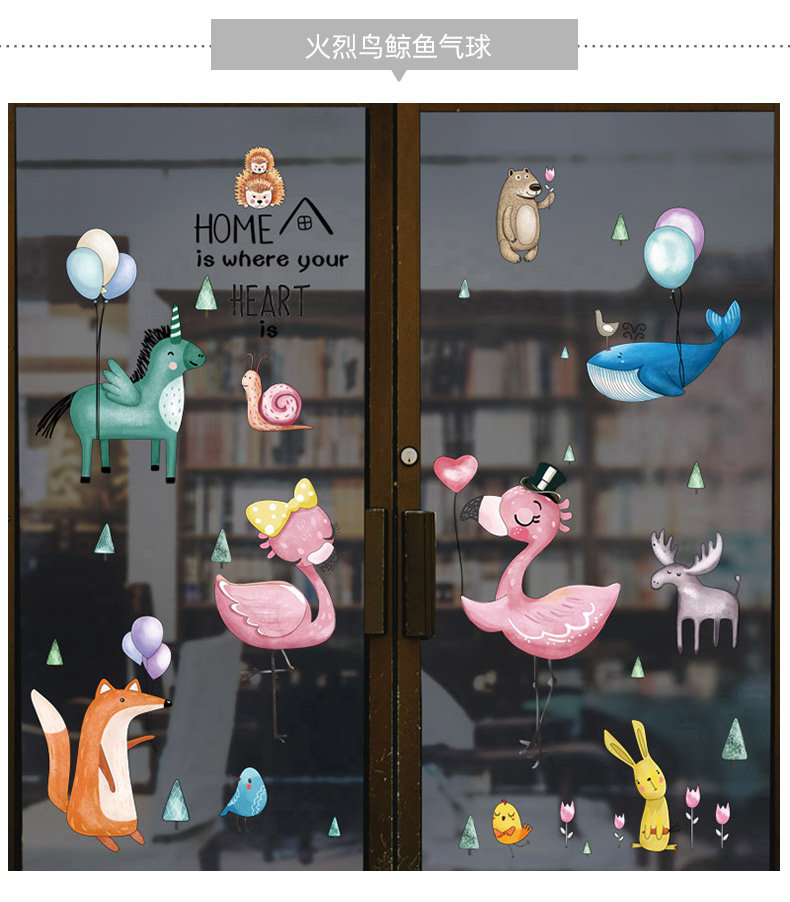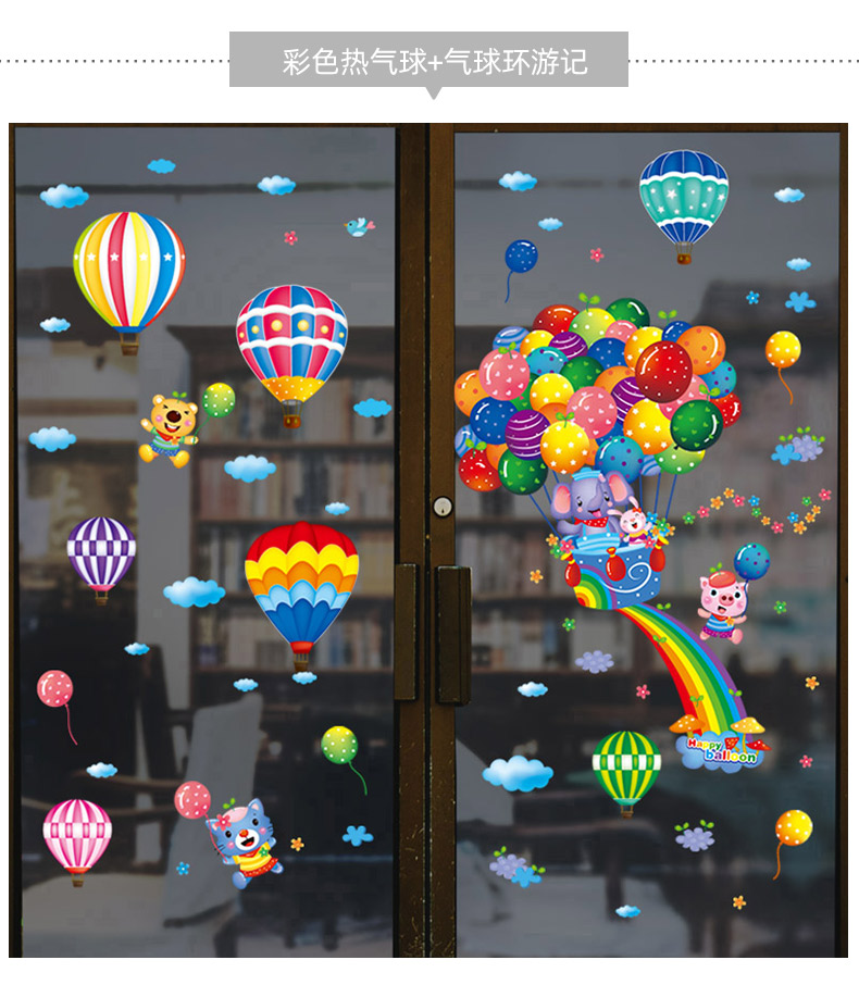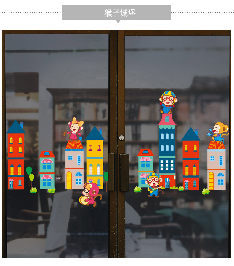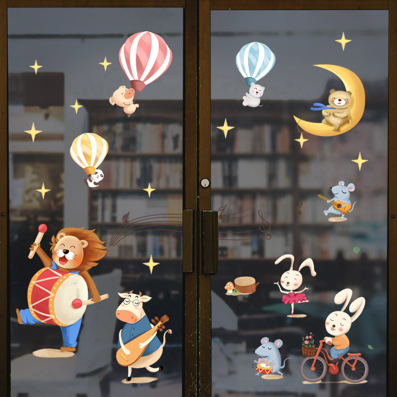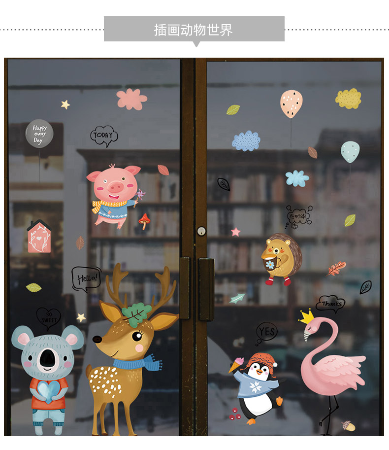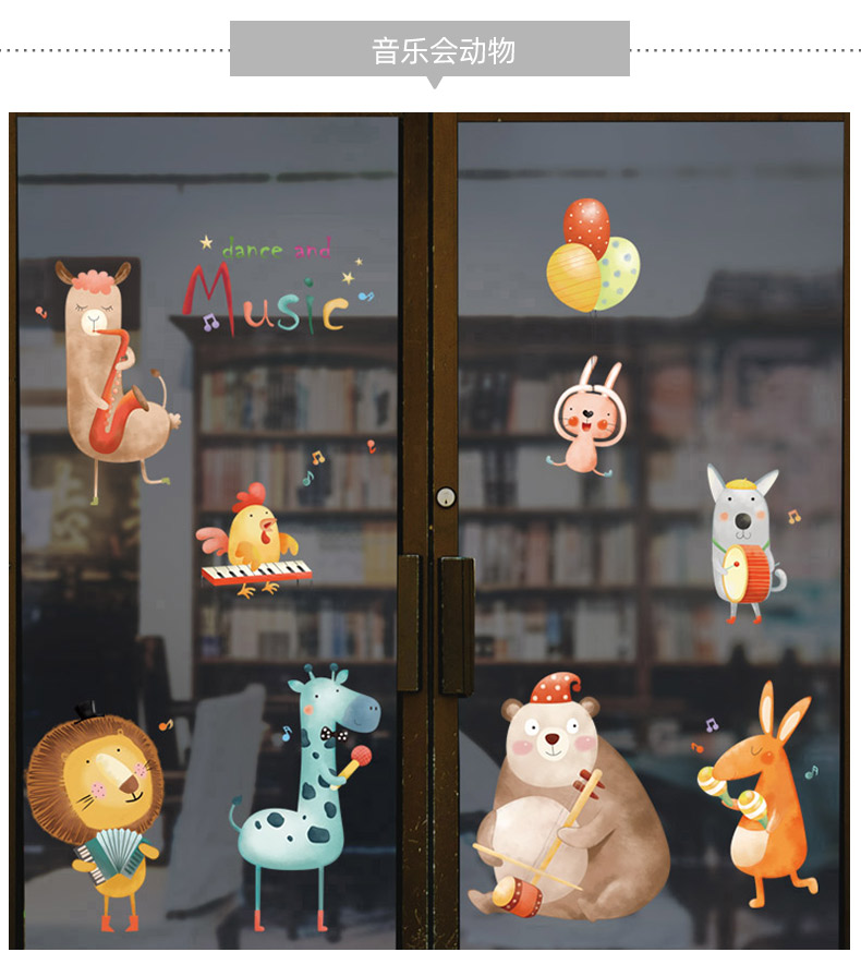 GJU8 유치원 환경 레이아웃 소재 벽 스티커 유리 도어 스티커 자체 접착 어린이 방 벽 장식 창스토어 가기