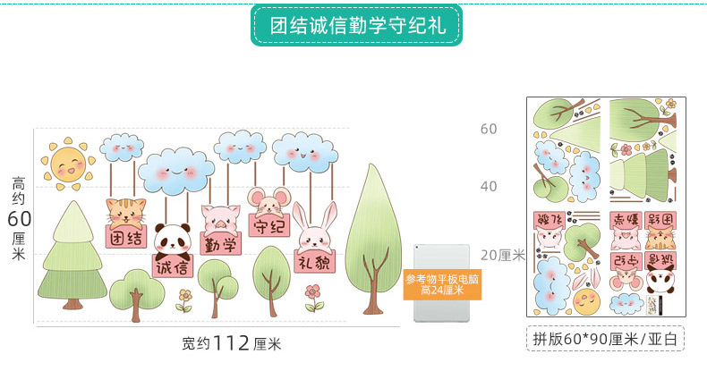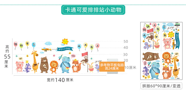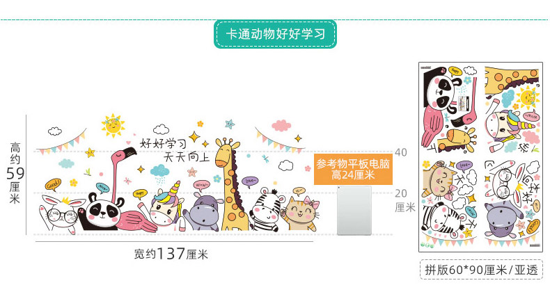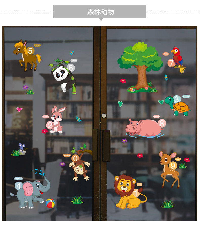 GJU8 유치원 환경 레이아웃 소재 벽 스티커 유리 도어 스티커 자체 접착 어린이 방 벽 장식 창