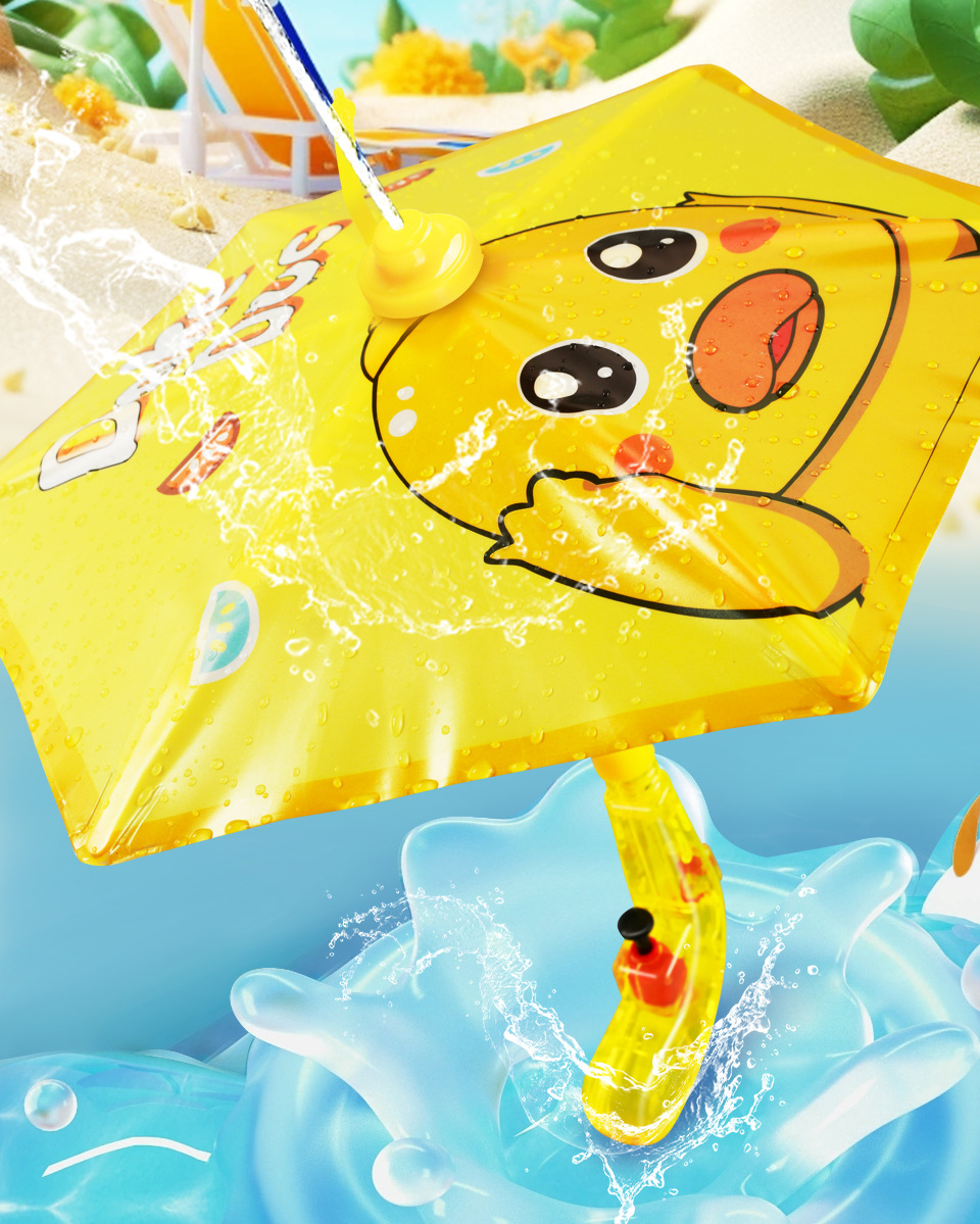 새로운 작은 노란 오리 우산 물총 장난감 어린이 만화 창조적 인 우산 압박 물 총 국경 간 포장 도매