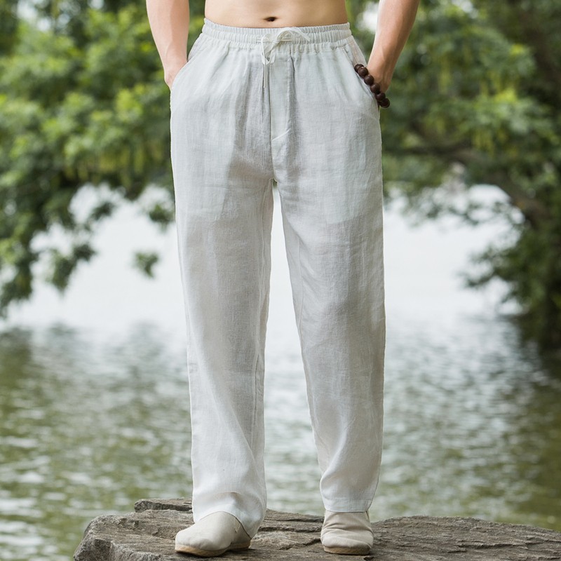 리넨 남성 바지 레트로 중국 스타일 남성 여름 느슨한 얇은 스트레이트 바지 남성면 및 리넨 캐주얼 트렌디 바지스토어 가기