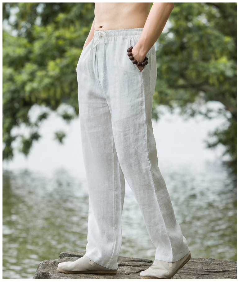 리넨 남성 바지 레트로 중국 스타일 남성 여름 느슨한 얇은 스트레이트 바지 남성면 및 리넨 캐주얼 트렌디 바지
