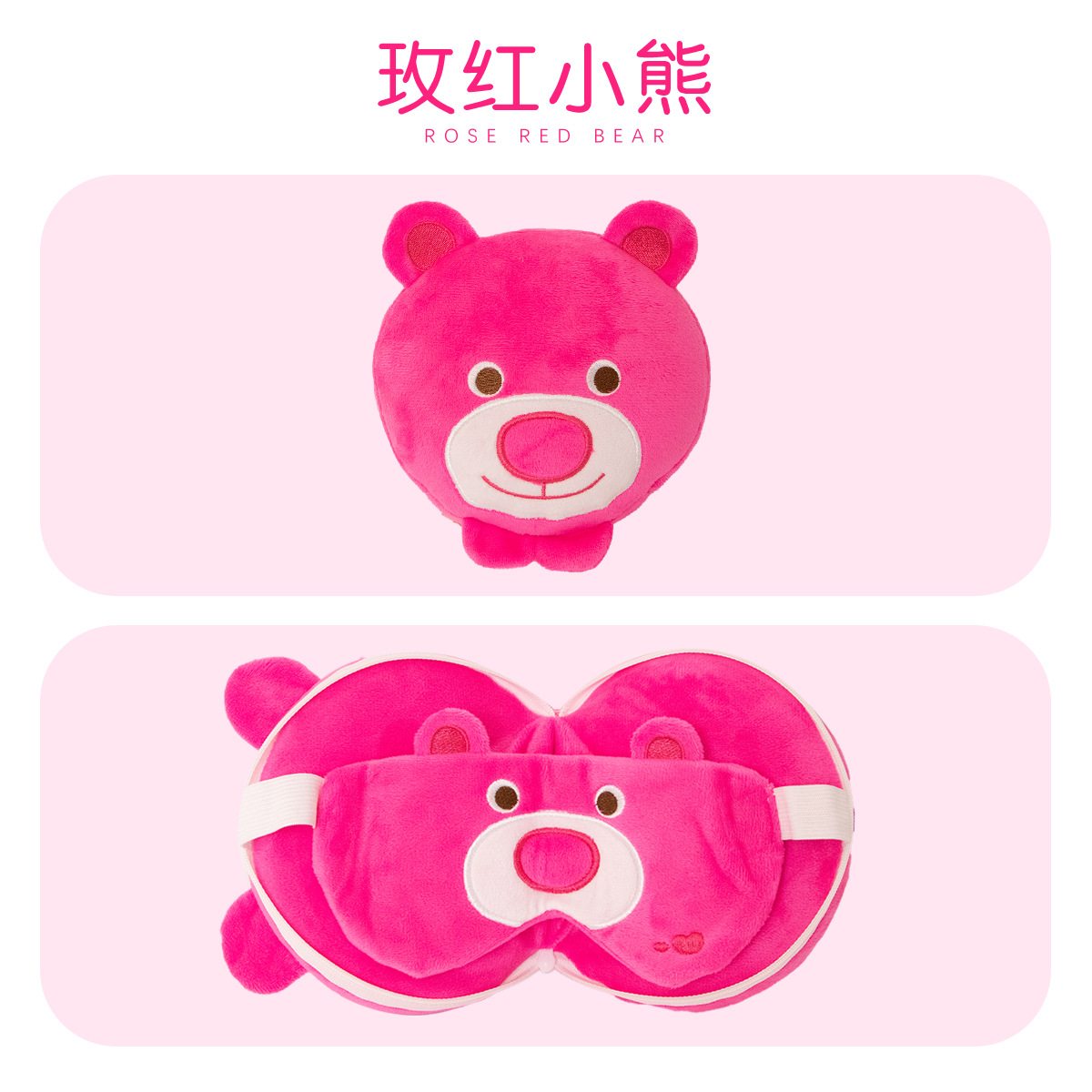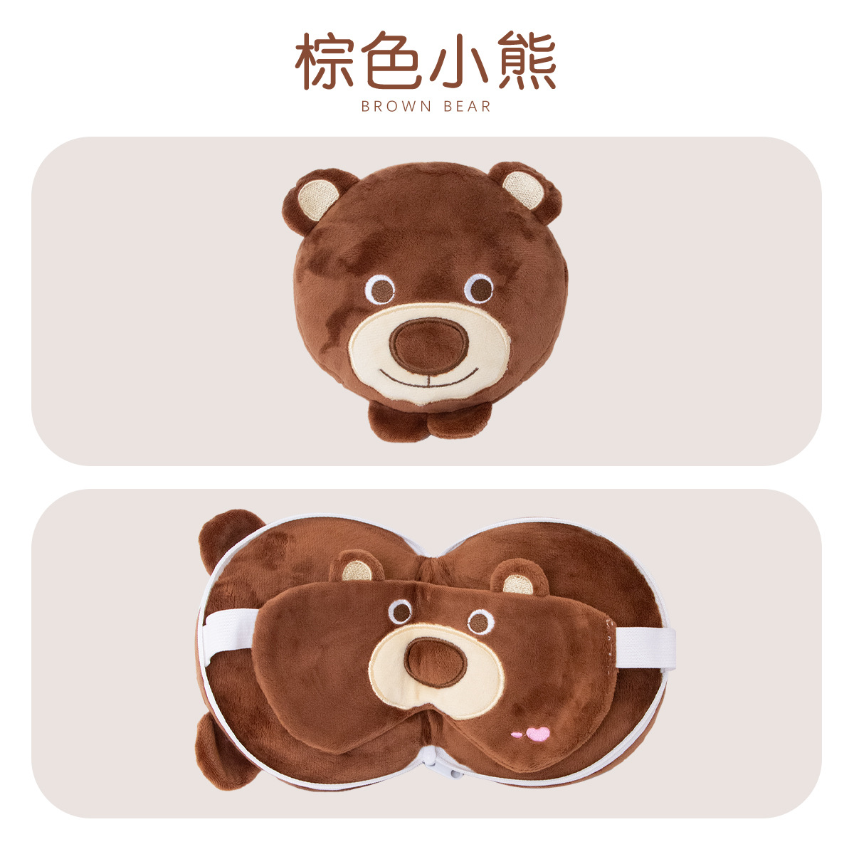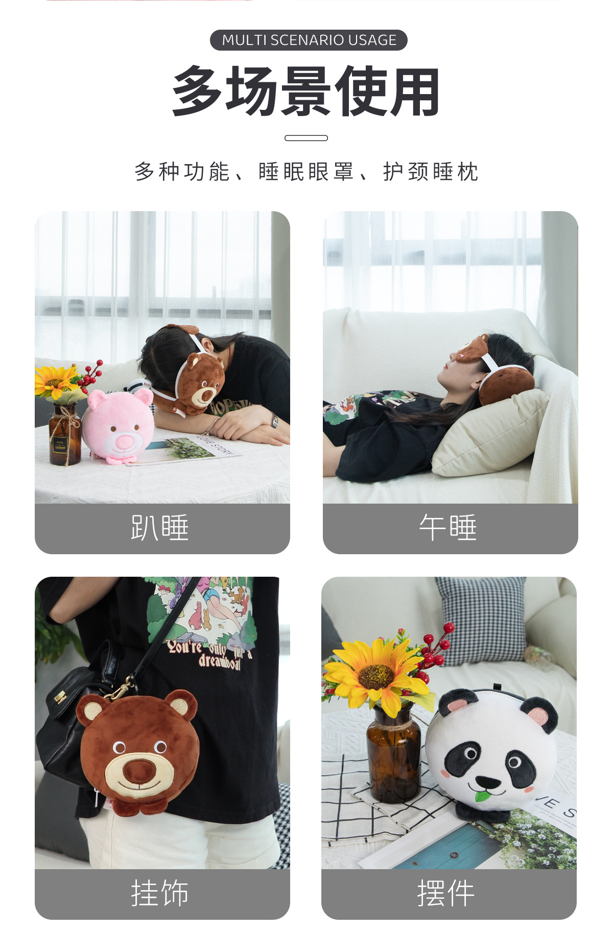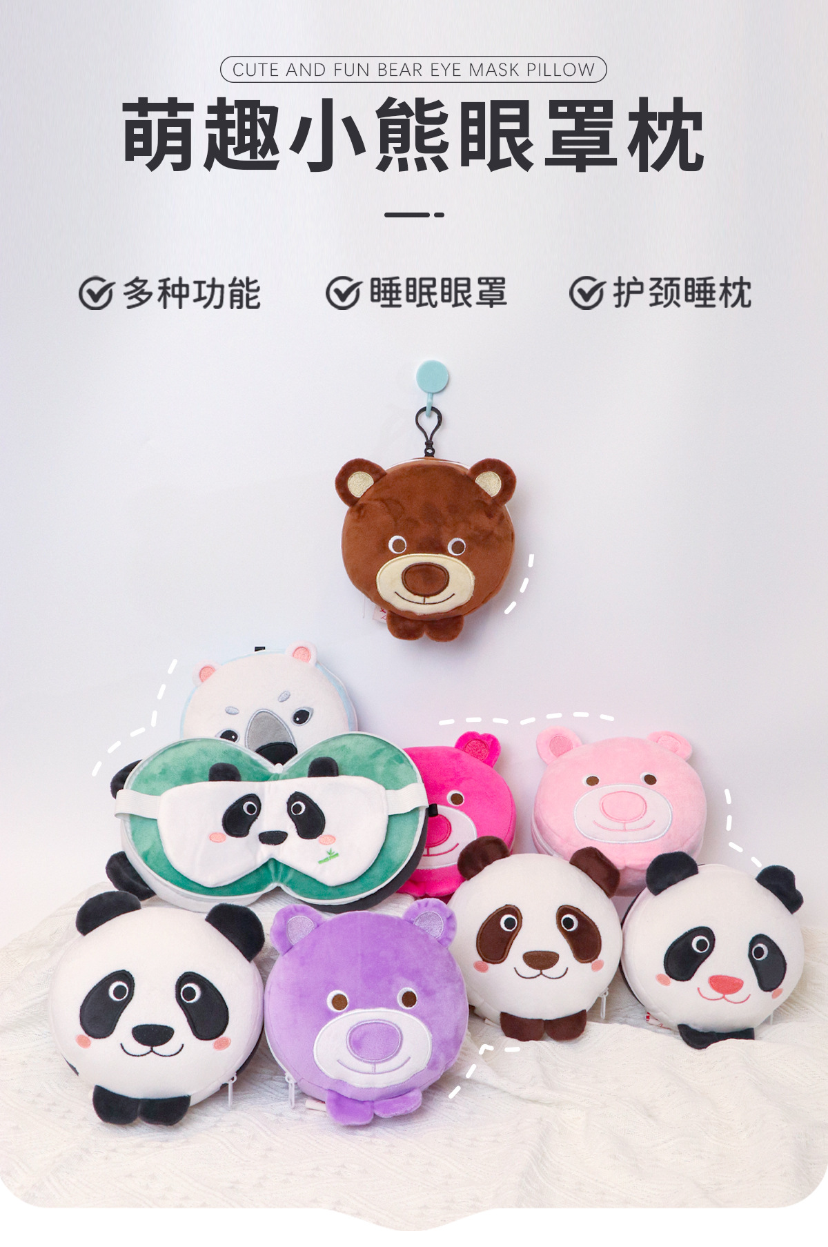 다기능 U 자형 베개 잠자는 베개 점심 식사 베개 만화 곰 잠자는 아이 마스크 목 베개 투인원 여행 베개 등받이