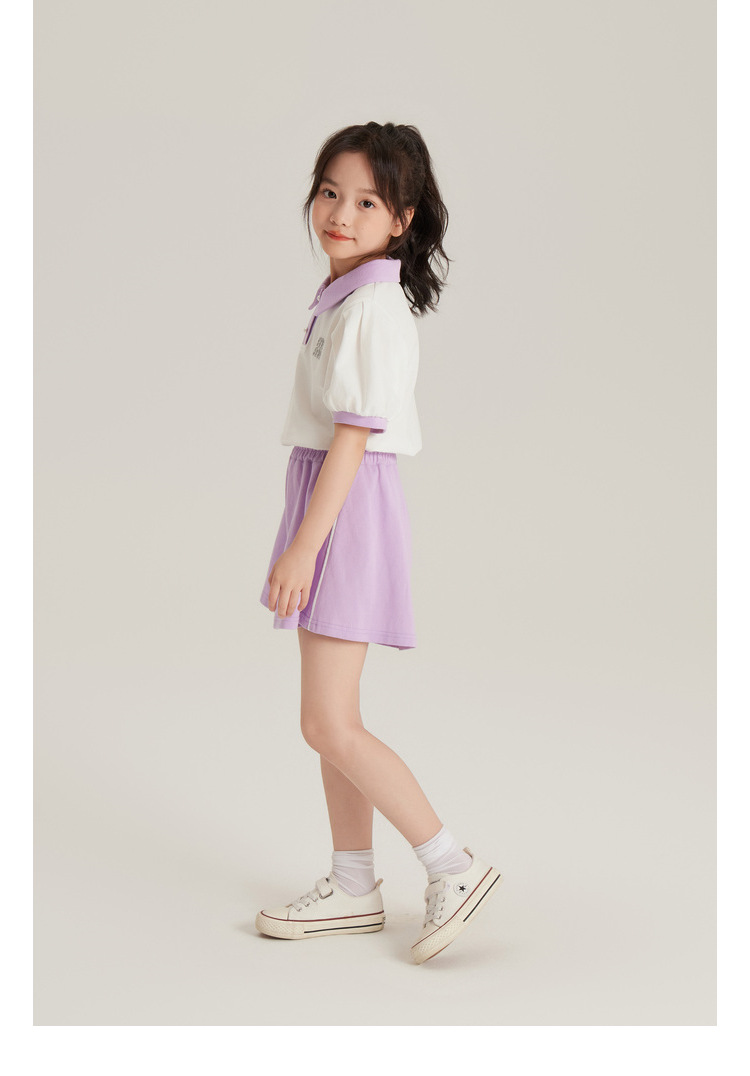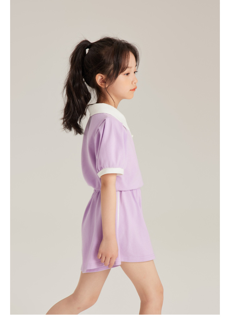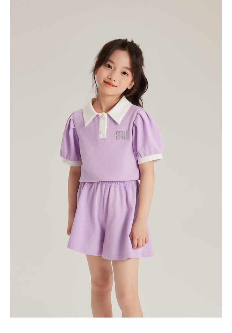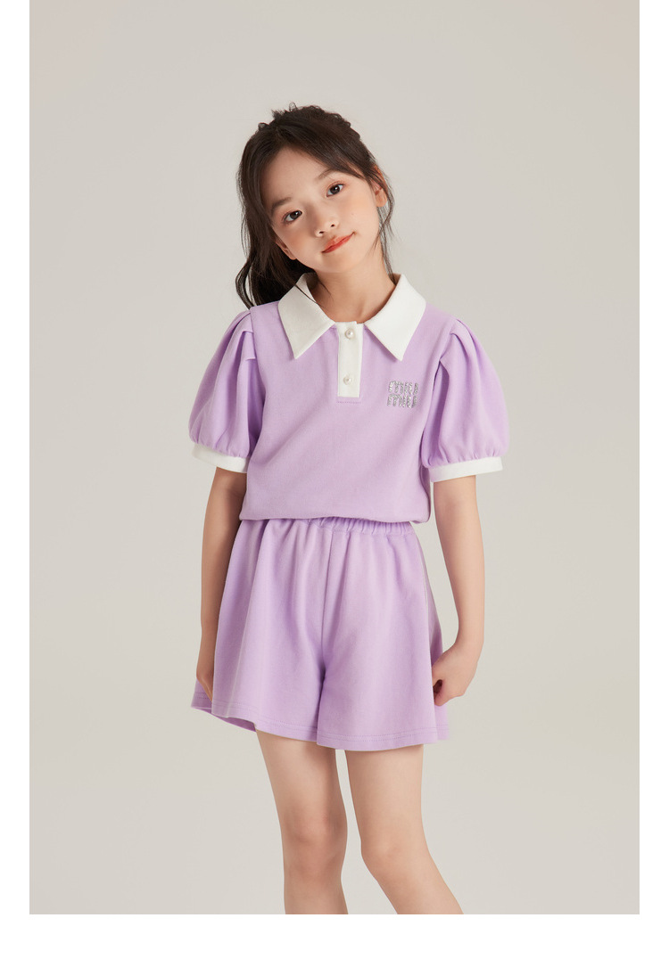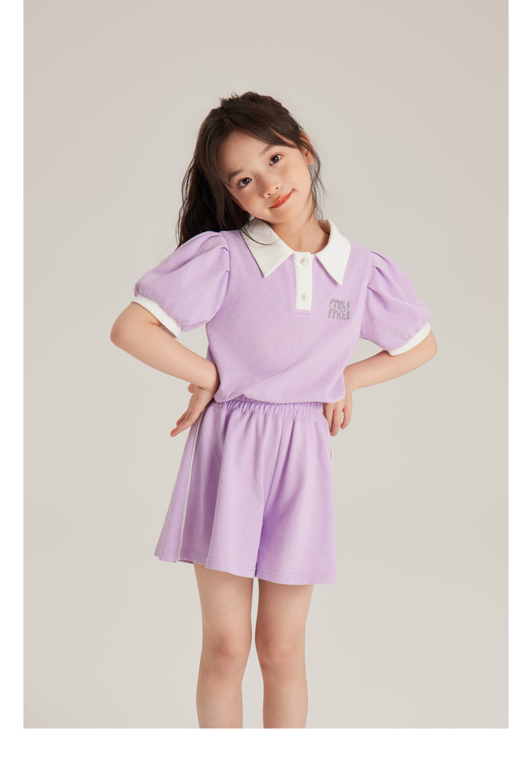 Amybaby Girls 세트 2024 여름 새로운 캐주얼 핫 다이아몬드 컬러 폴로 셔츠 느슨한 반바지 투피스 세트
