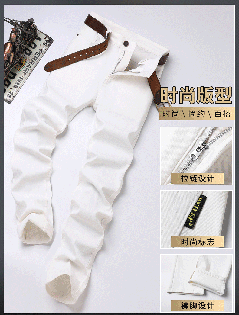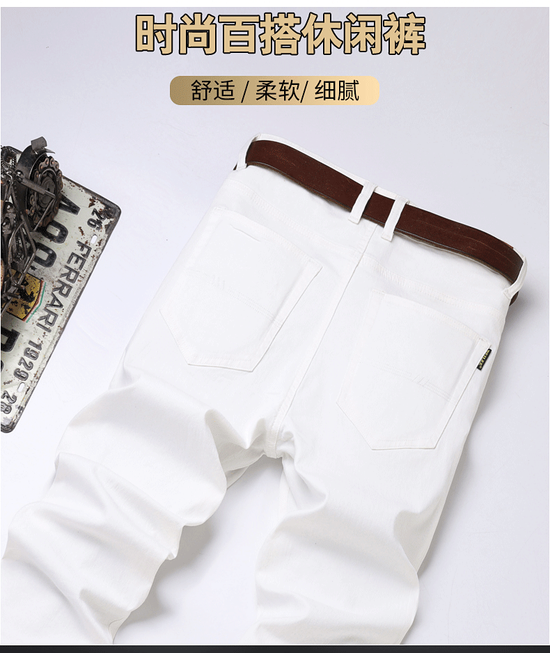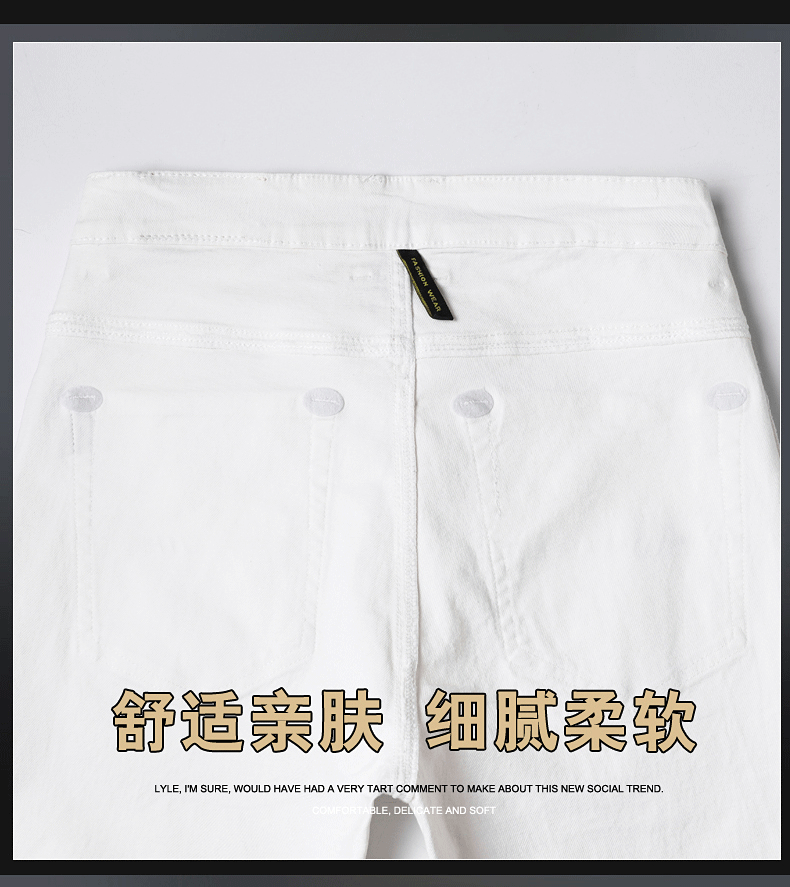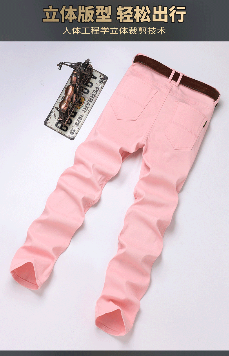 새로운 도착 라이트 럭셔리 유행 핑크 청바지 남성용 슬림 핏 여름 스트레치 올 매치 미드 웨이스트 캐주얼 바지