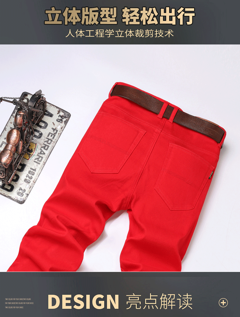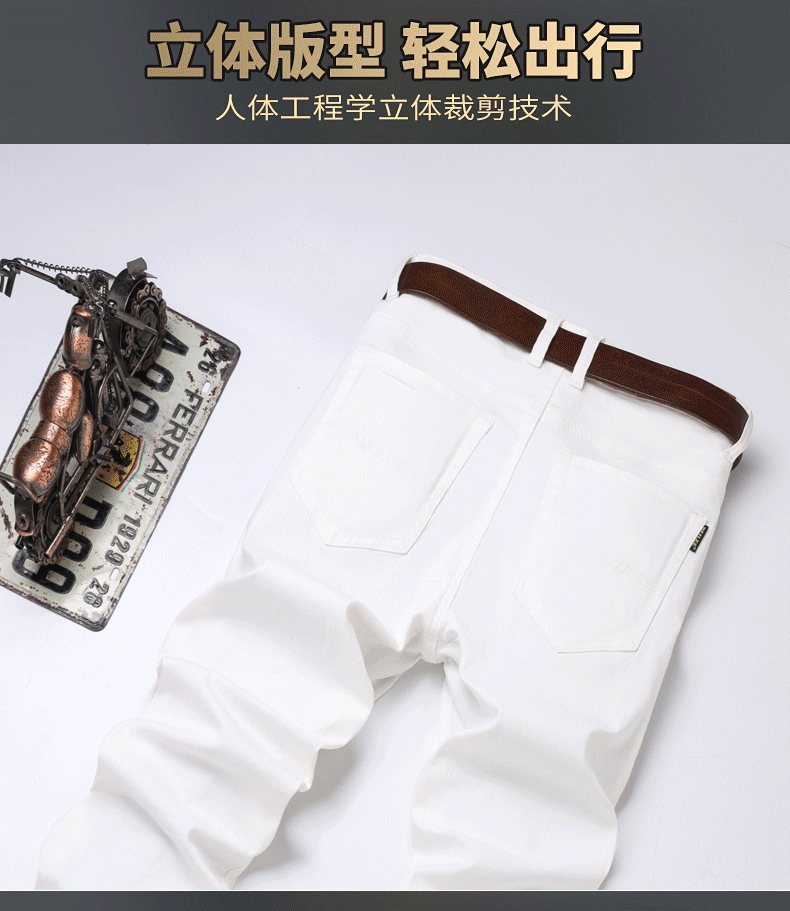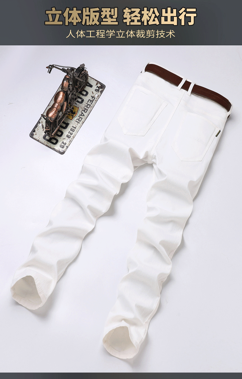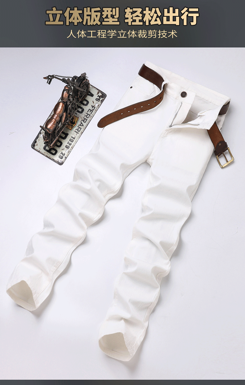 새로운 도착 라이트 럭셔리 유행 핑크 청바지 남성용 슬림 핏 여름 스트레치 올 매치 미드 웨이스트 캐주얼 바지
