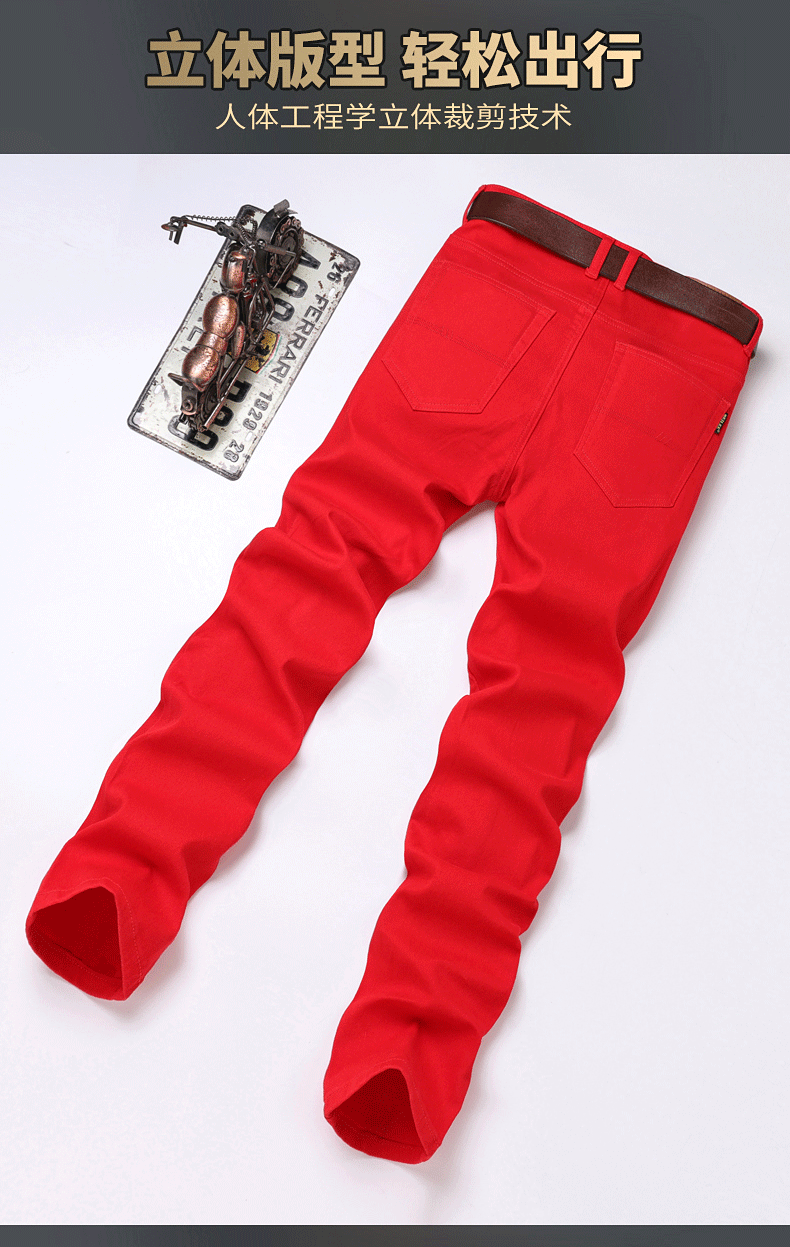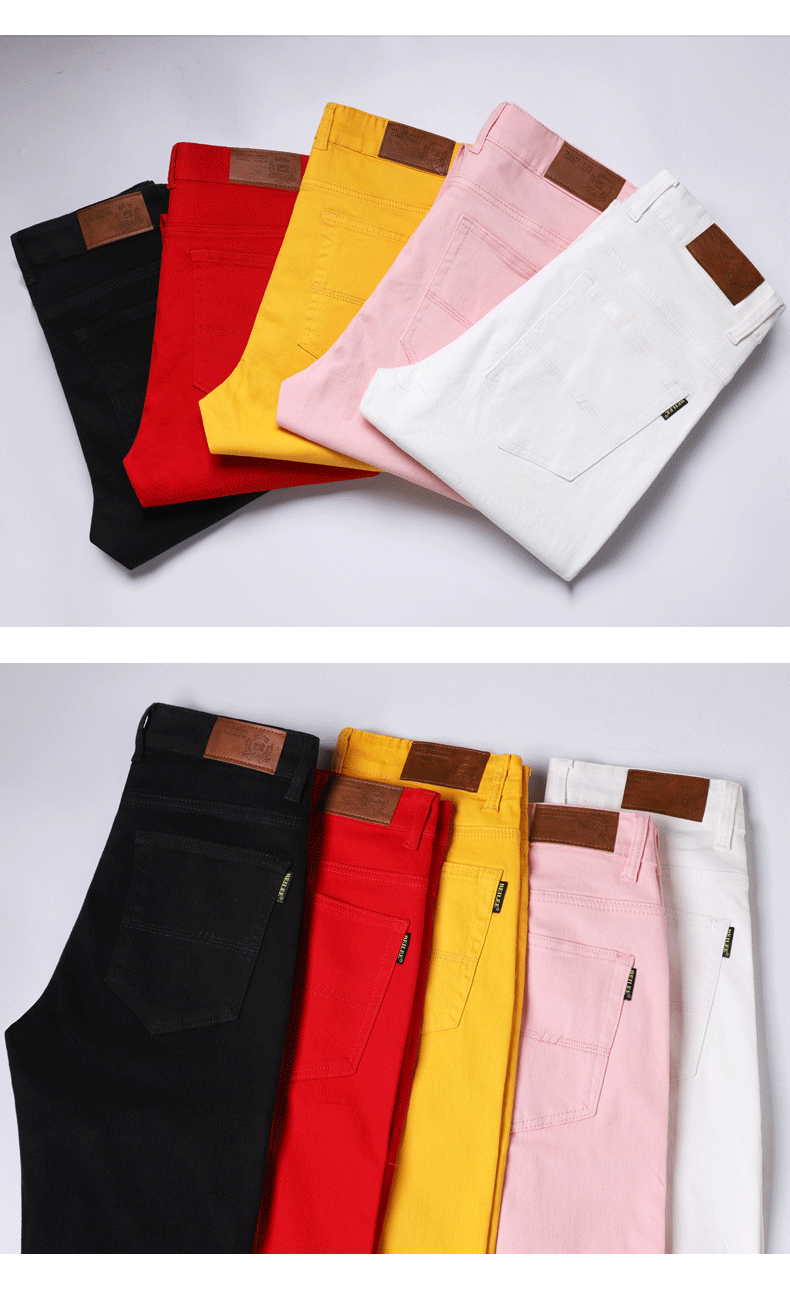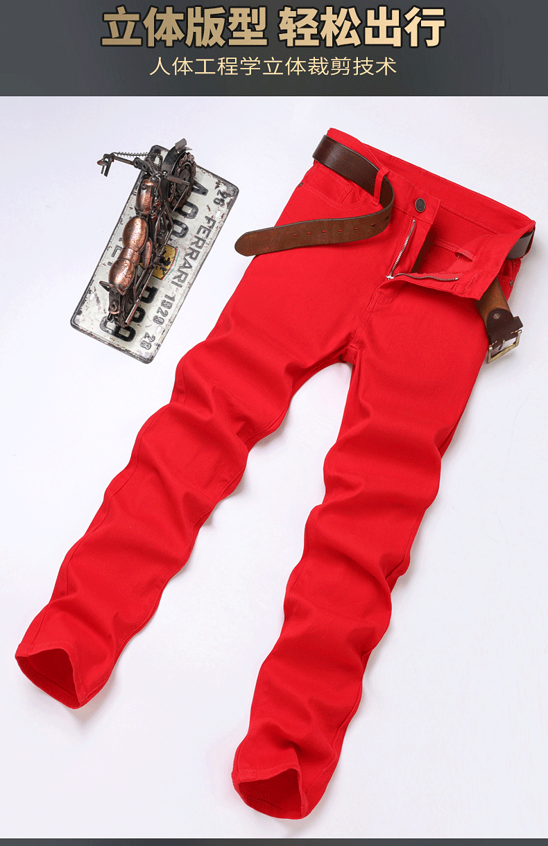 새로운 도착 라이트 럭셔리 유행 핑크 청바지 남성용 슬림 핏 여름 스트레치 올 매치 미드 웨이스트 캐주얼 바지스토어 가기