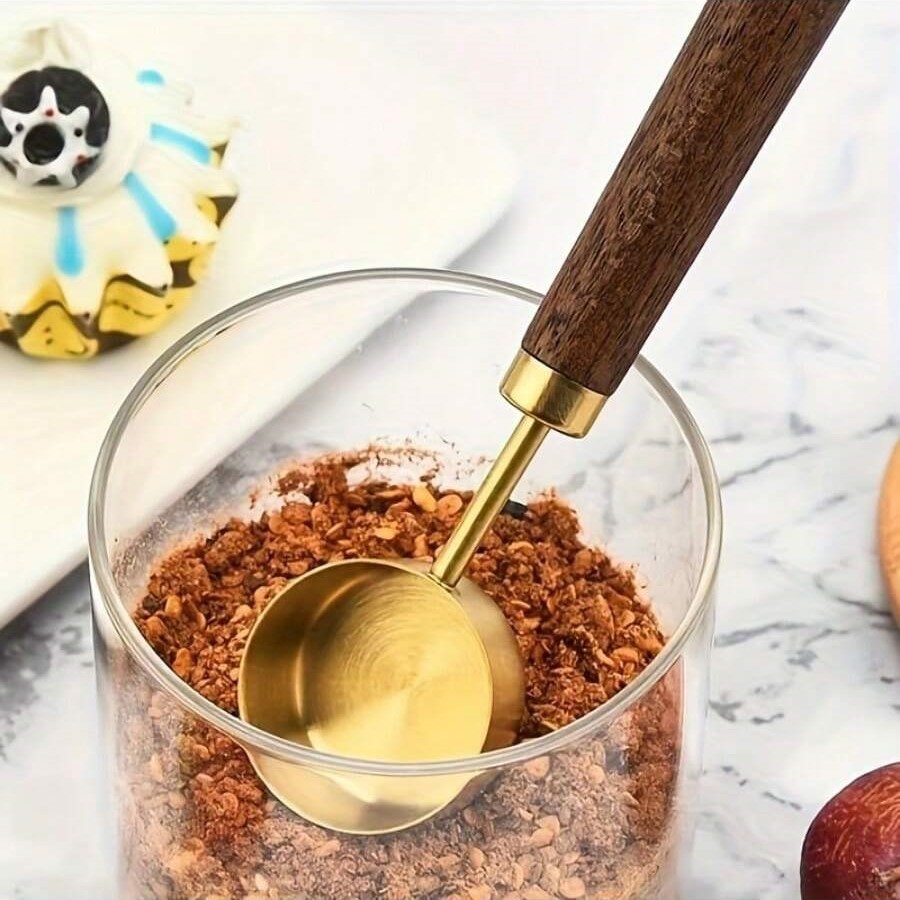 금도금 스테인리스 측정 컵 측정 숟가락 아카시아 나무 손잡이 측정 숟가락 측정 도구 8 조각 주방 베이킹 도구스토어 가기