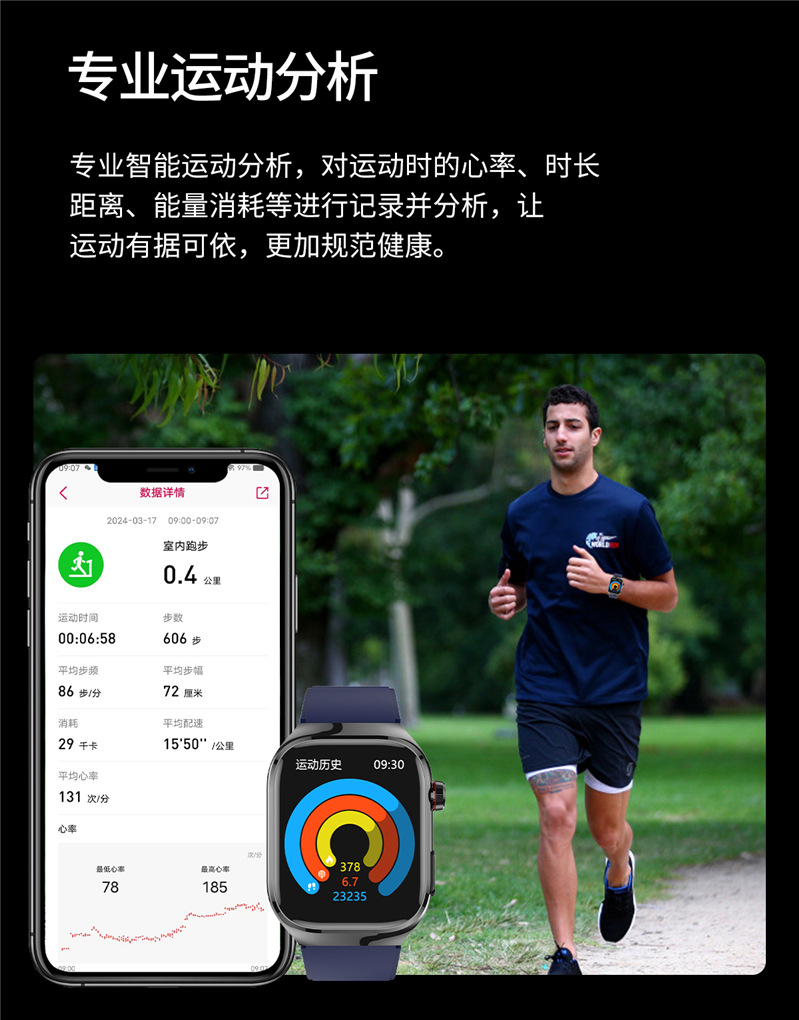 特色 | 微体检功能(一键体检),五脏检测 1. 血糖监测/尿酸监测/血脂监测 2. ECG心电图 3. 体脂BMI测量 4. 蓝牙通话,智能语音助手 5. 远程亲友关爱,多运动模式 6. 24小时连续动态心率监测(带活体检测功能),体温监测,压力测试,独立精准血氧,血压监测,睡眠监测等健康监测功能 7. 2.04 英寸高分辨率 368*448 AMOLED 全触屏 8. APP多表盘市场及自定义表盘 9.女性健康,天气预报,久坐提醒,消息、来电等信息提醒 10.650mAh高密度聚合物锂电池,一次充电使用续航10天-15天 |