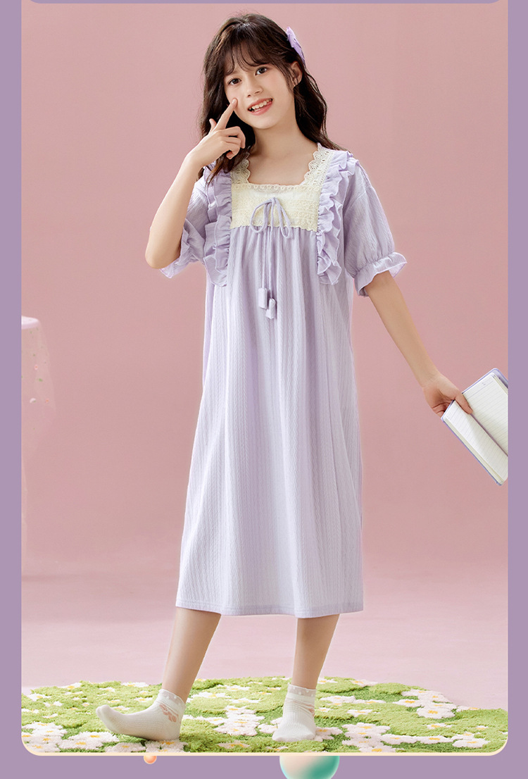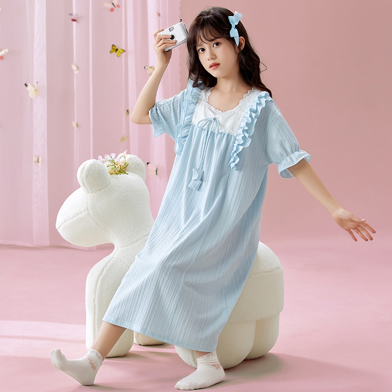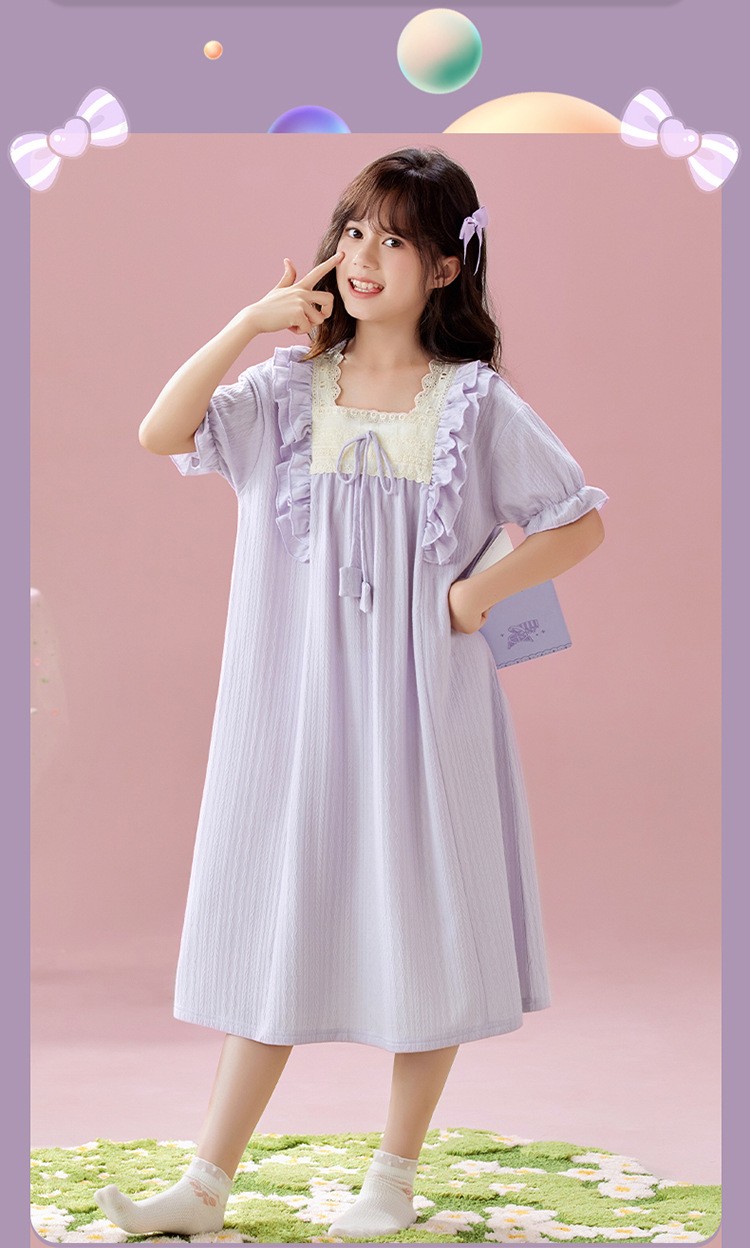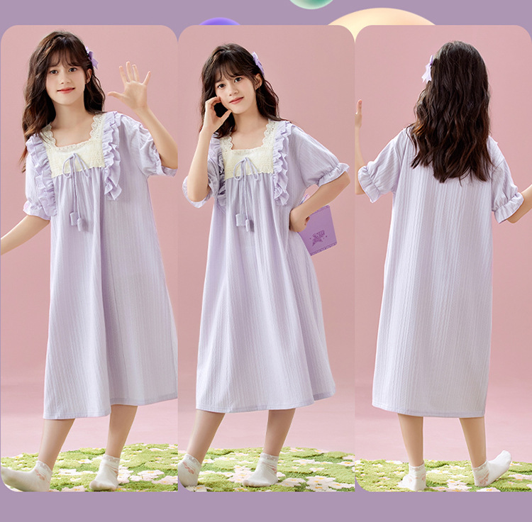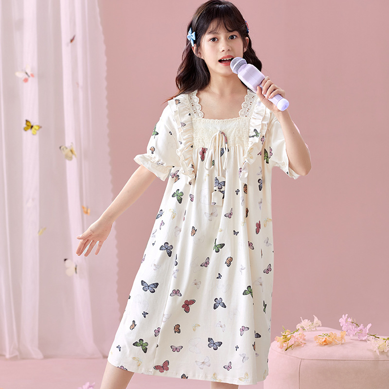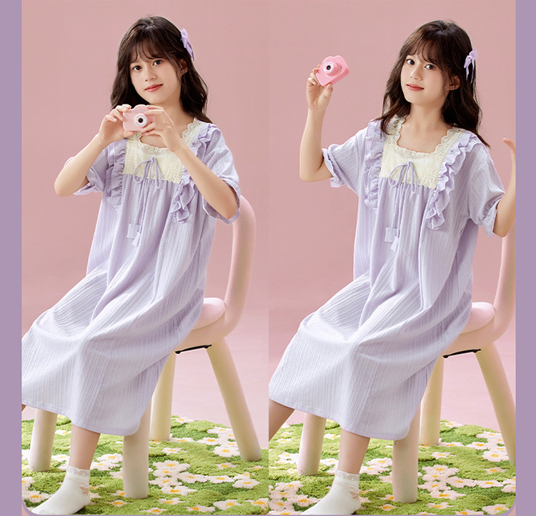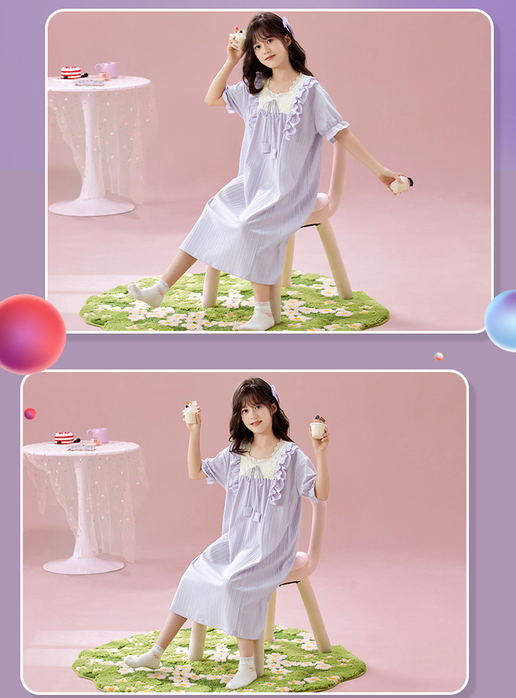 여자 나이트가운 여름 새로운 공주 스타일 반팔 느슨한 얇은 부모 자식 잠옷 중년 소녀 원피스스토어 가기