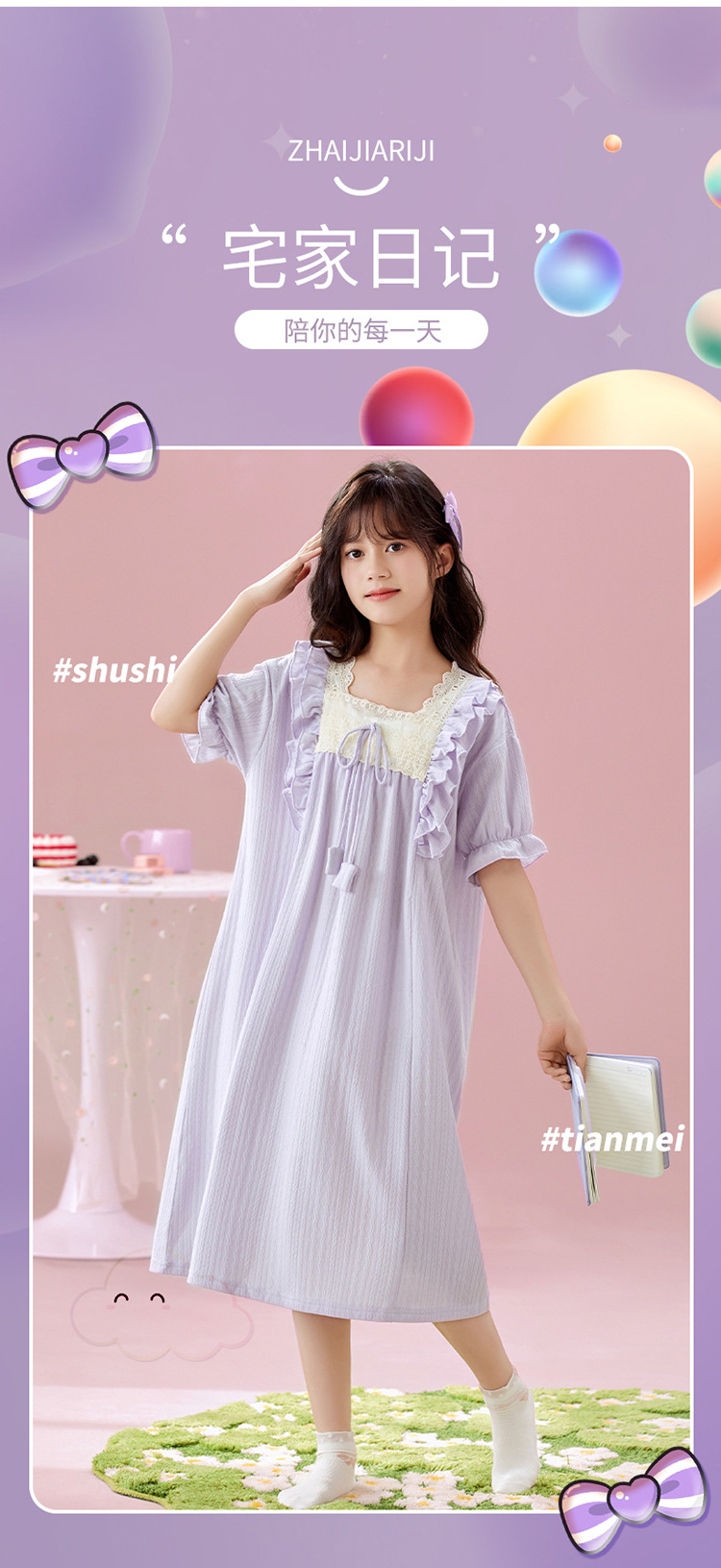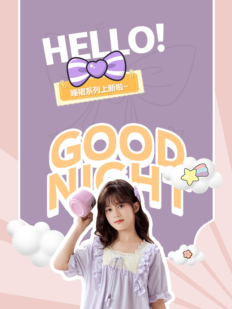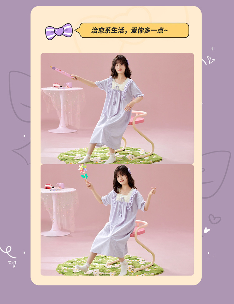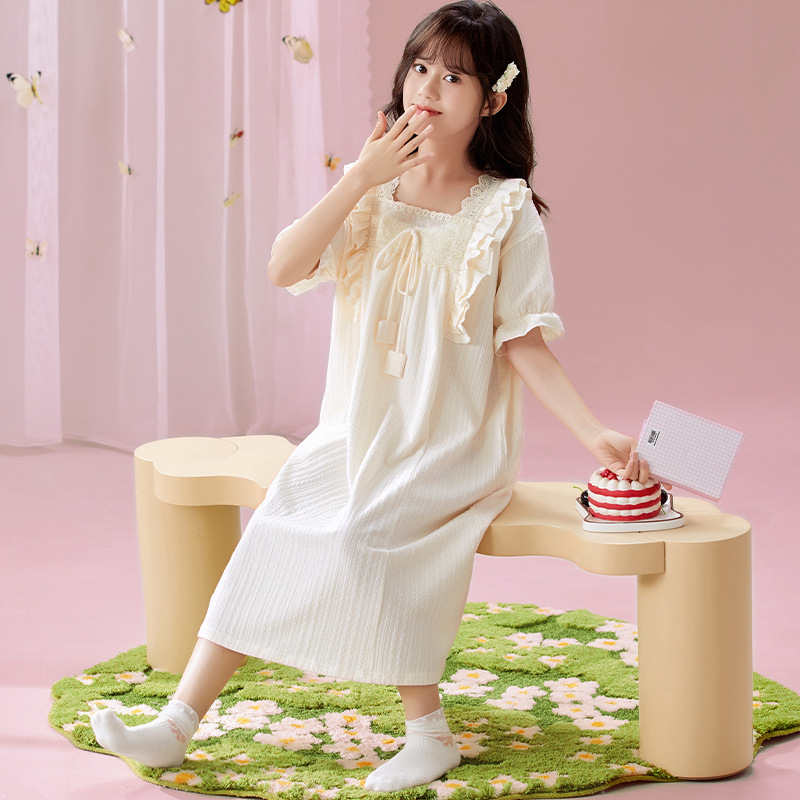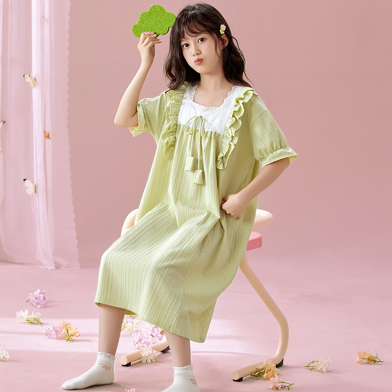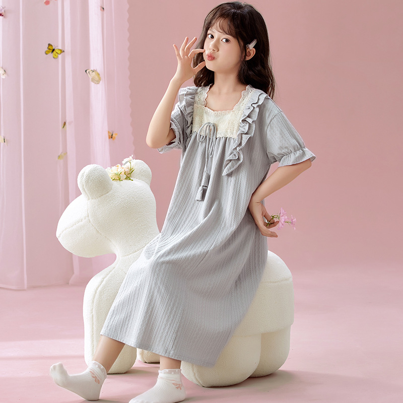 여자 나이트가운 여름 새로운 공주 스타일 반팔 느슨한 얇은 부모 자식 잠옷 중년 소녀 원피스스토어 가기