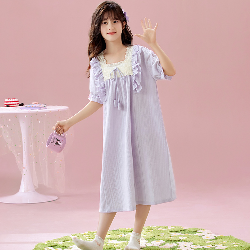 여자 나이트가운 여름 새로운 공주 스타일 반팔 느슨한 얇은 부모 자식 잠옷 중년 소녀 원피스