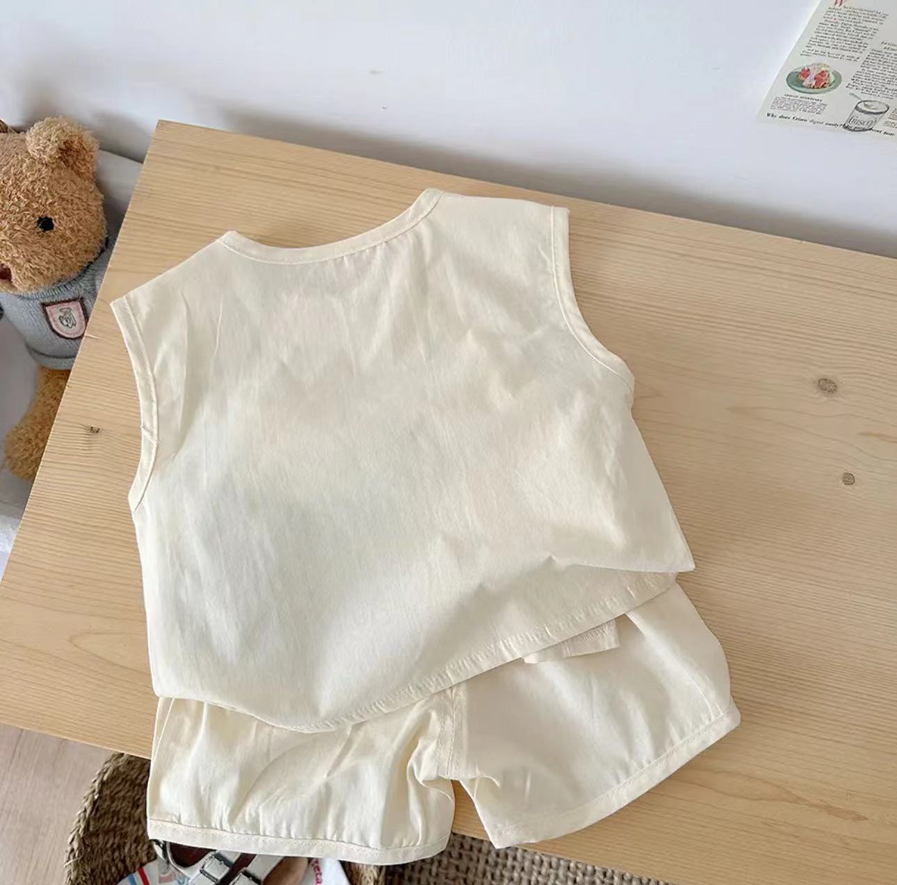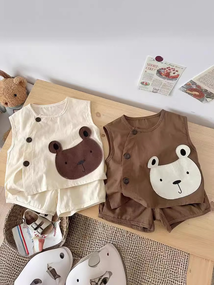 [100% Cotton] 여름 Maillard 소년과 소녀를위한 100% 씻은 면화 세트