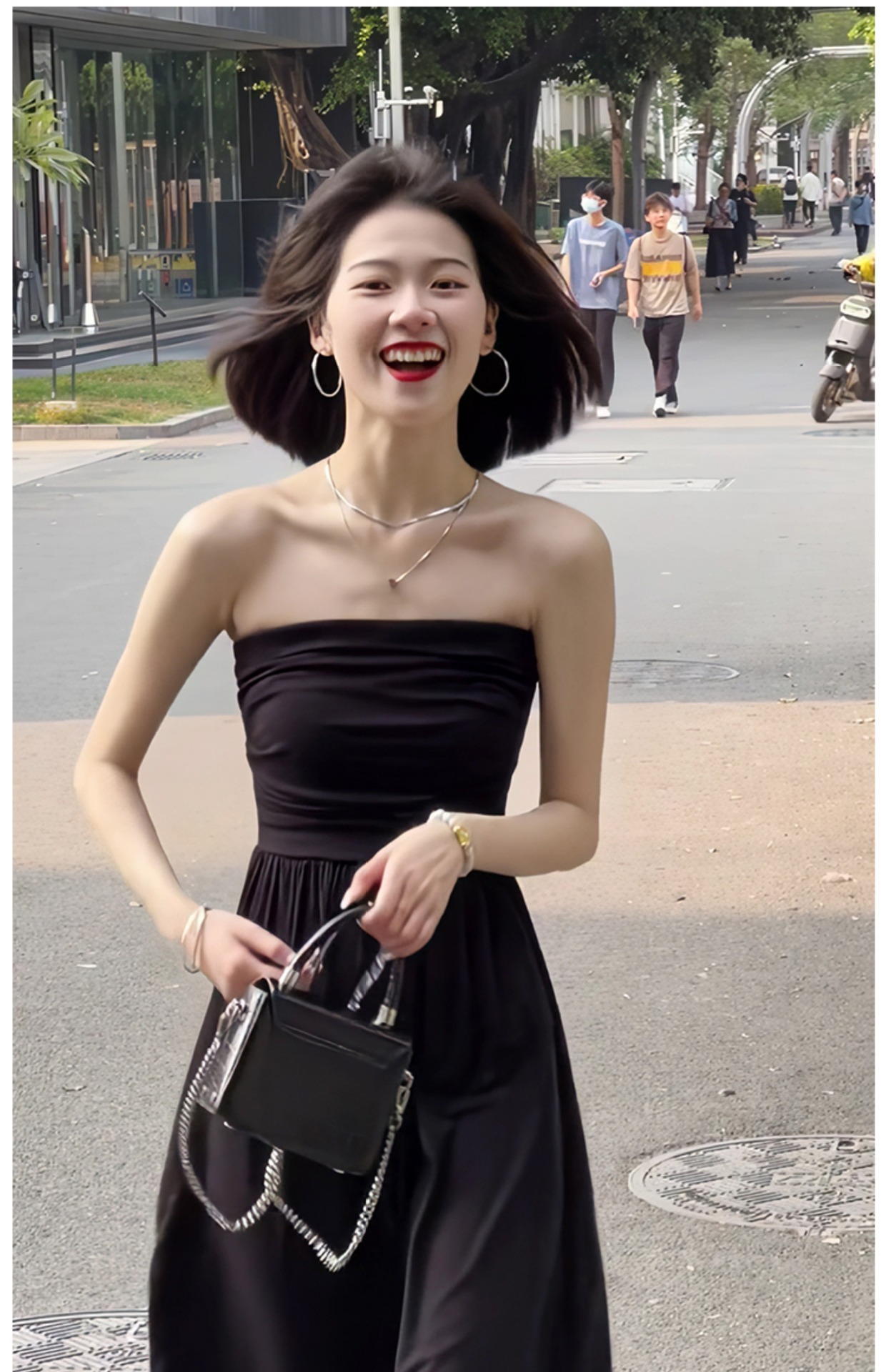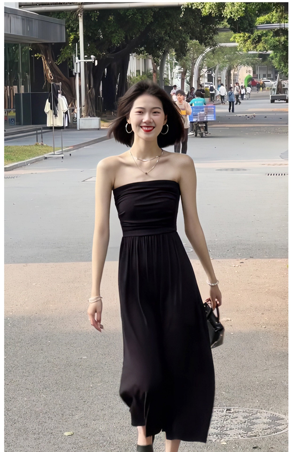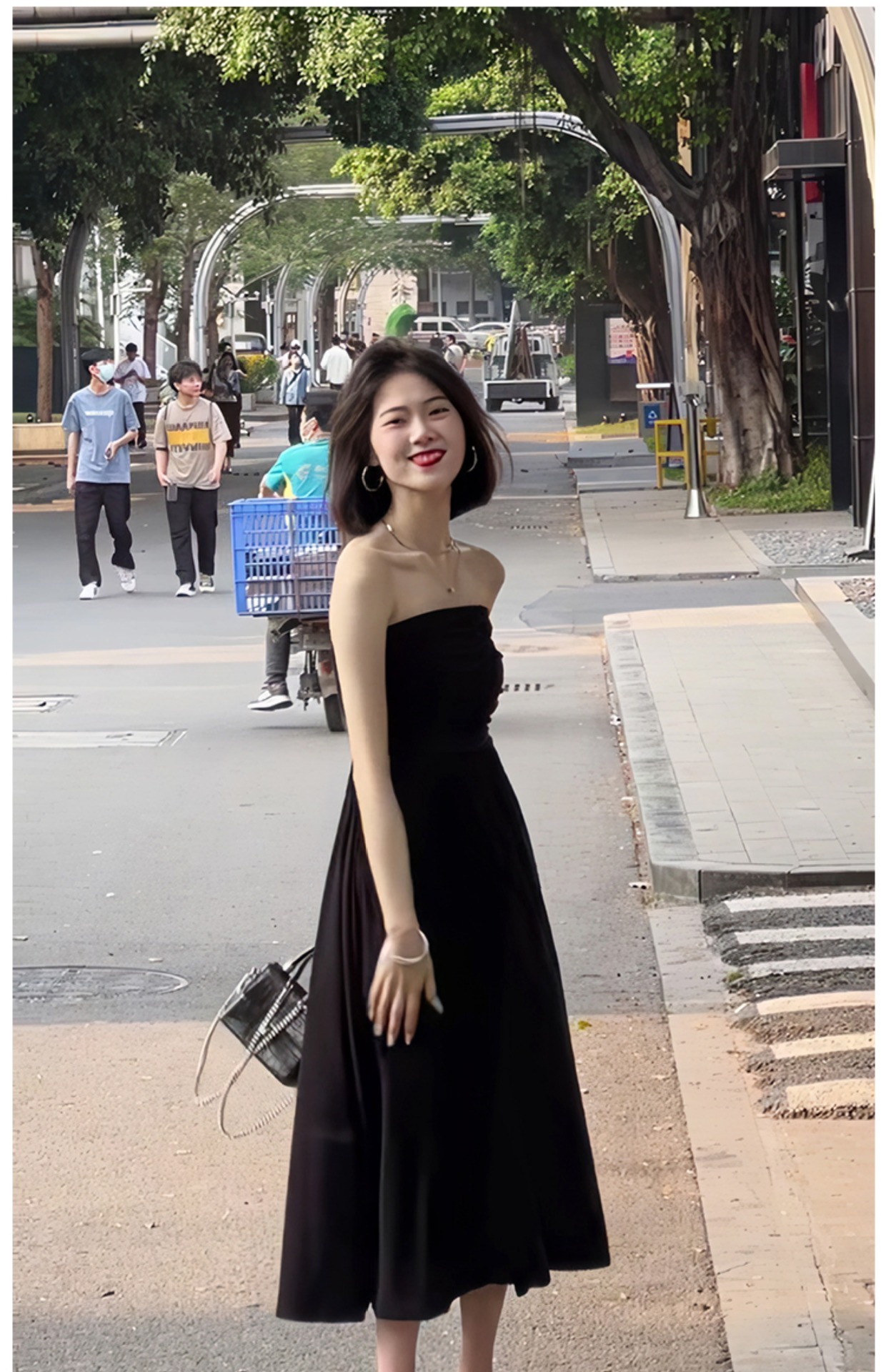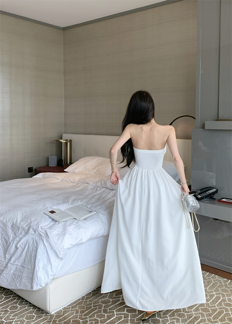 여름 새 스타일 우아한 순수 어깨 민소매 튜브 탑 원피스 여성 한국식 타이트 허리 슬리밍 롱 스커트스토어 가기